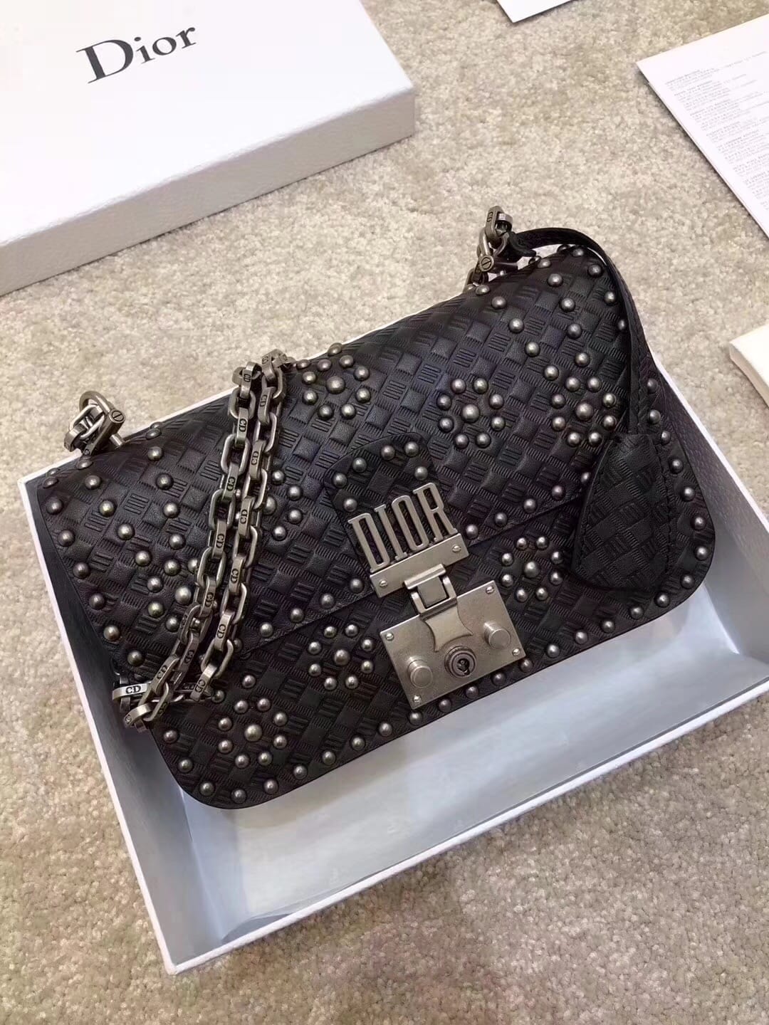 喜欢这款的小仙女??????都很有独特眼光哦!能给整体提亮的复古铆钉时髦又有格调,非常适合这个季节。柔软的小牛皮会让人迷恋这种触感,手与包包每一次的触碰都是一种享受!---?M5817 尺寸:21cm