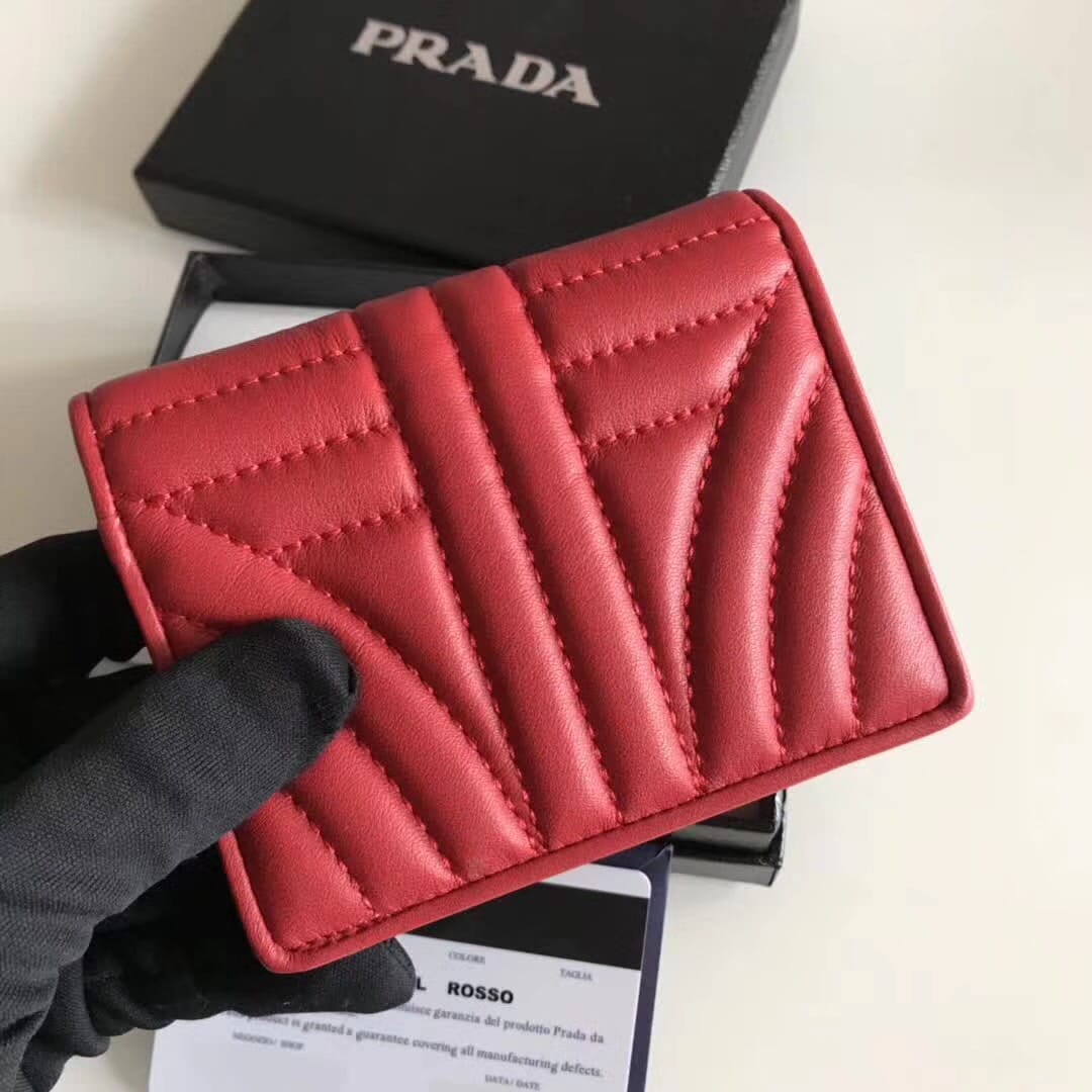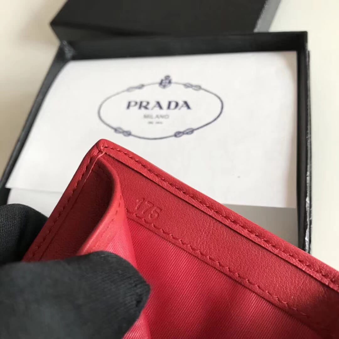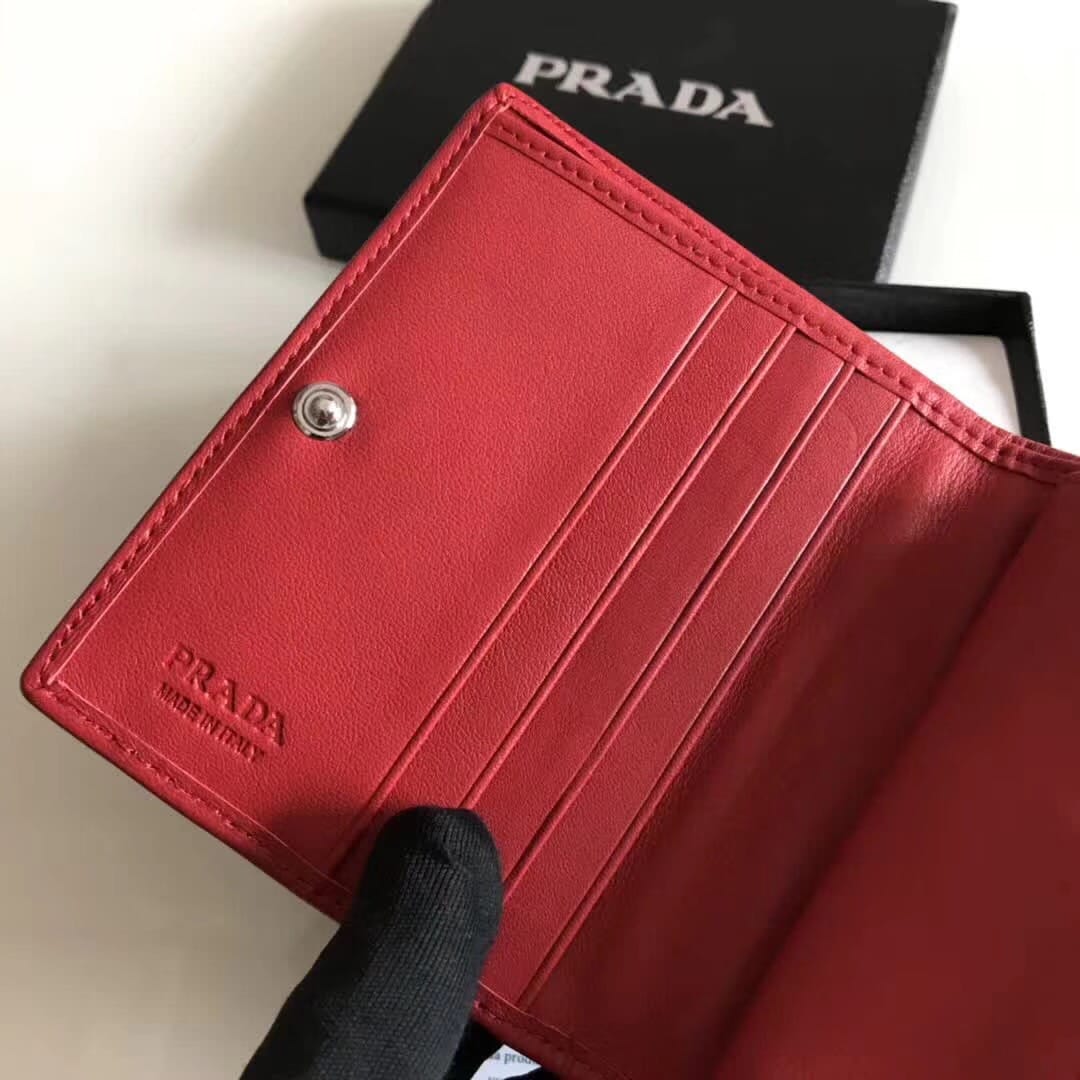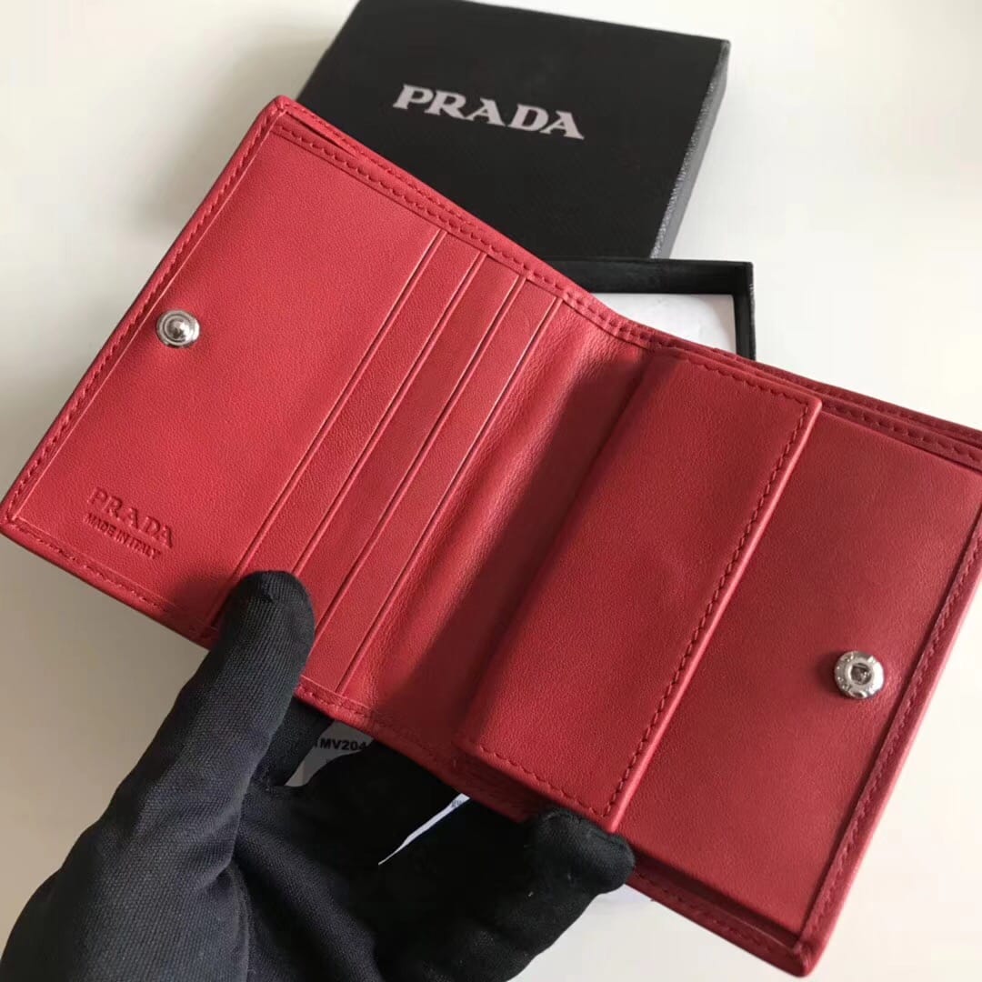 P家??女士对折短夹,红色,型号1MV204,进口小牛皮制作