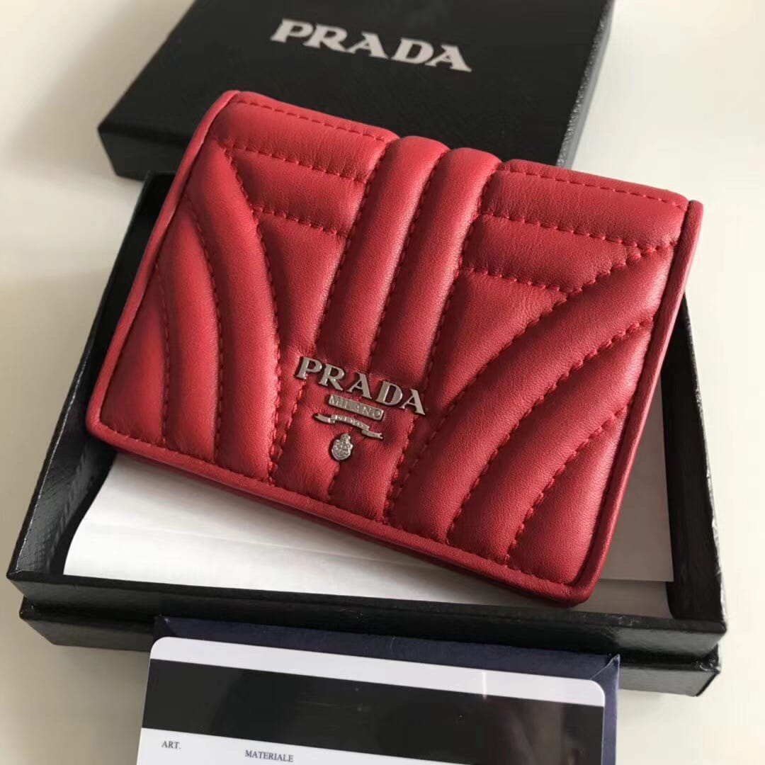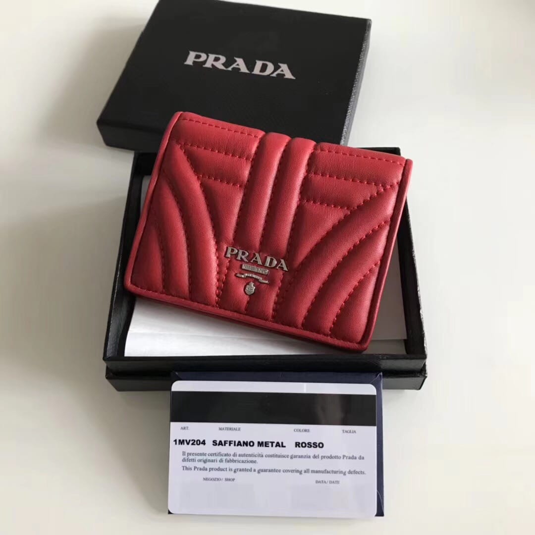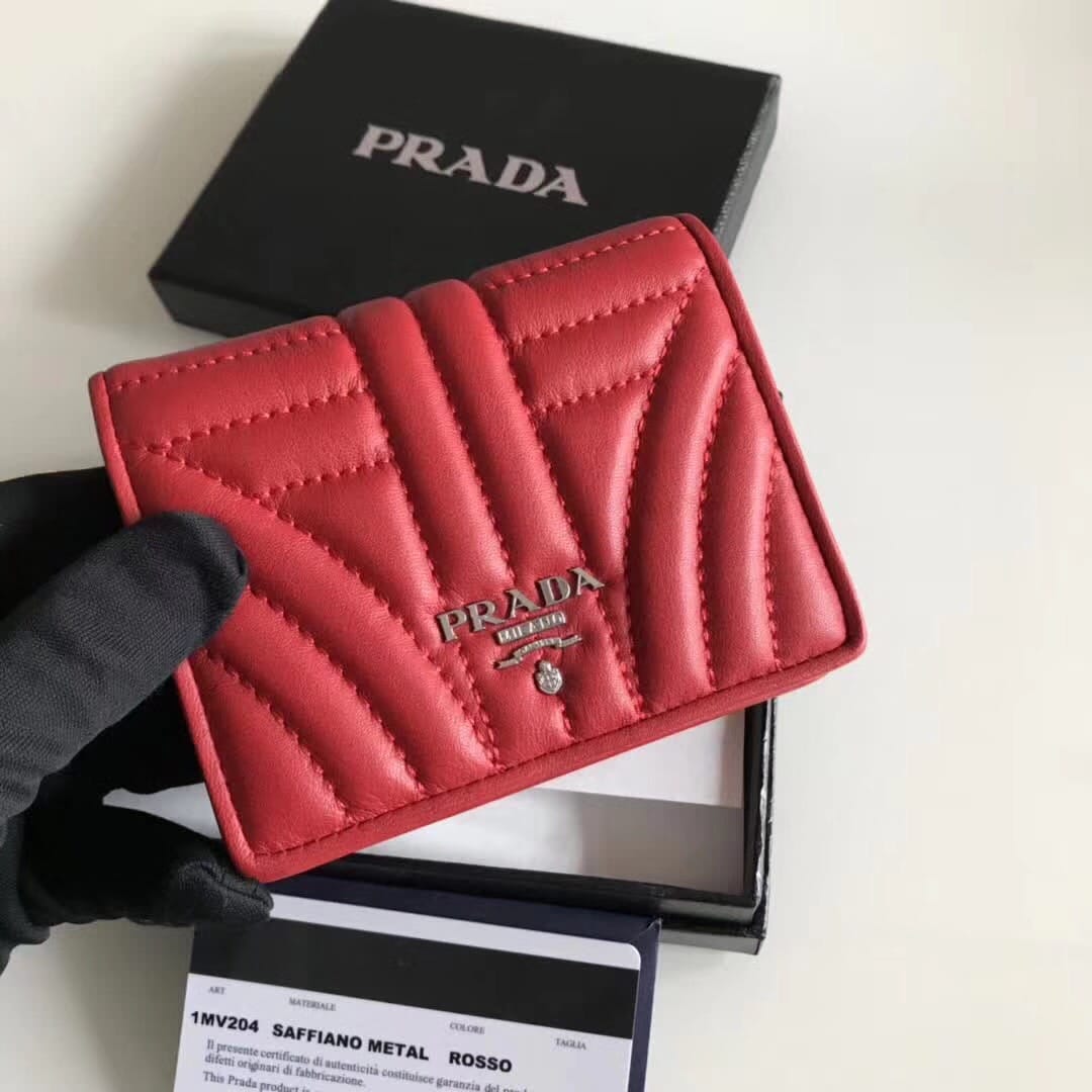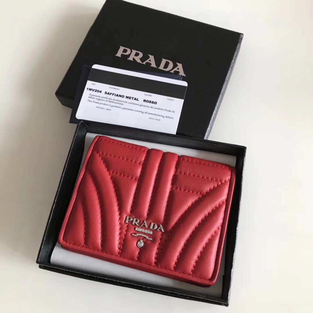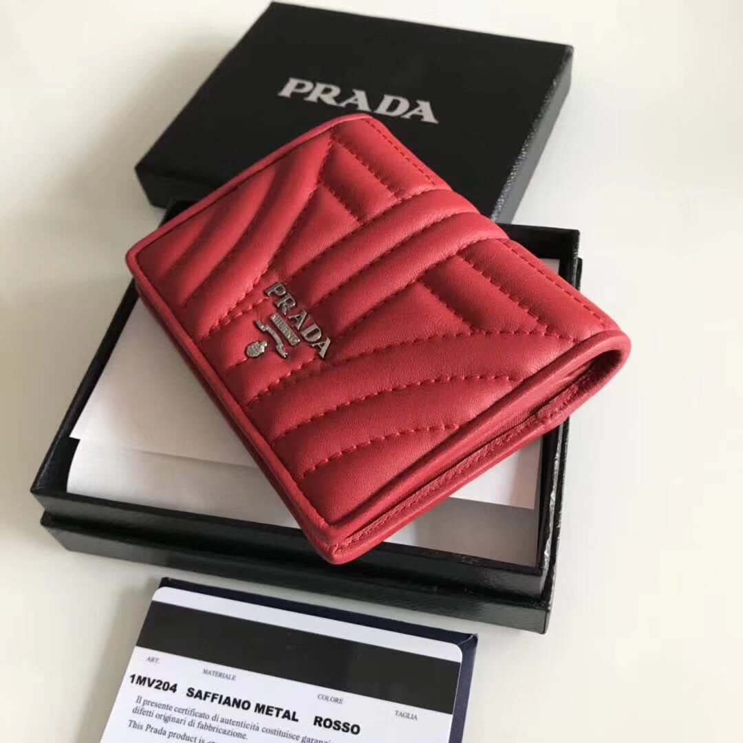 P家??女士对折短夹,红色,型号1MV204,进口小牛皮制作