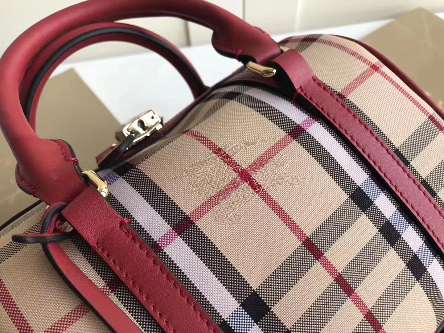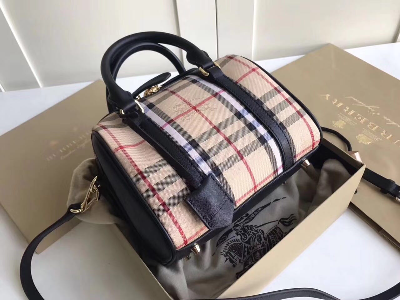 Burberry 经典格子手提斜挎波士顿包