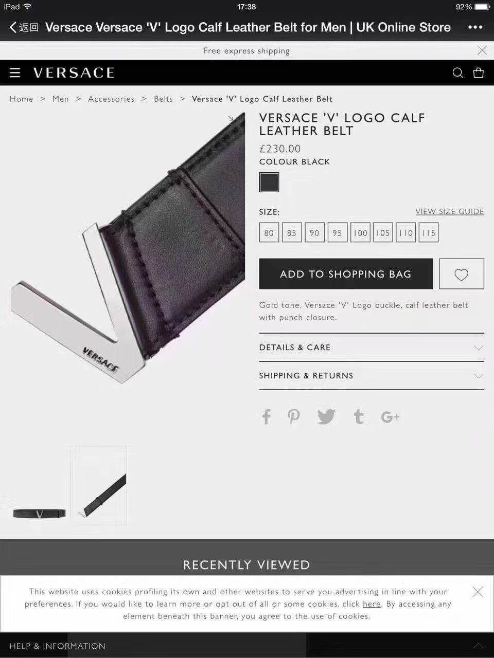 代购级别,特殊渠道货? 范思哲 皮带腰带 原单进口 4.0m