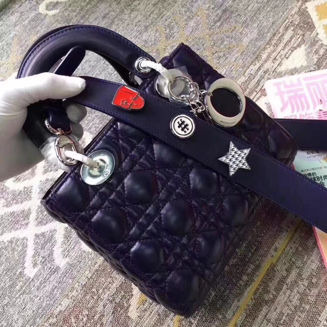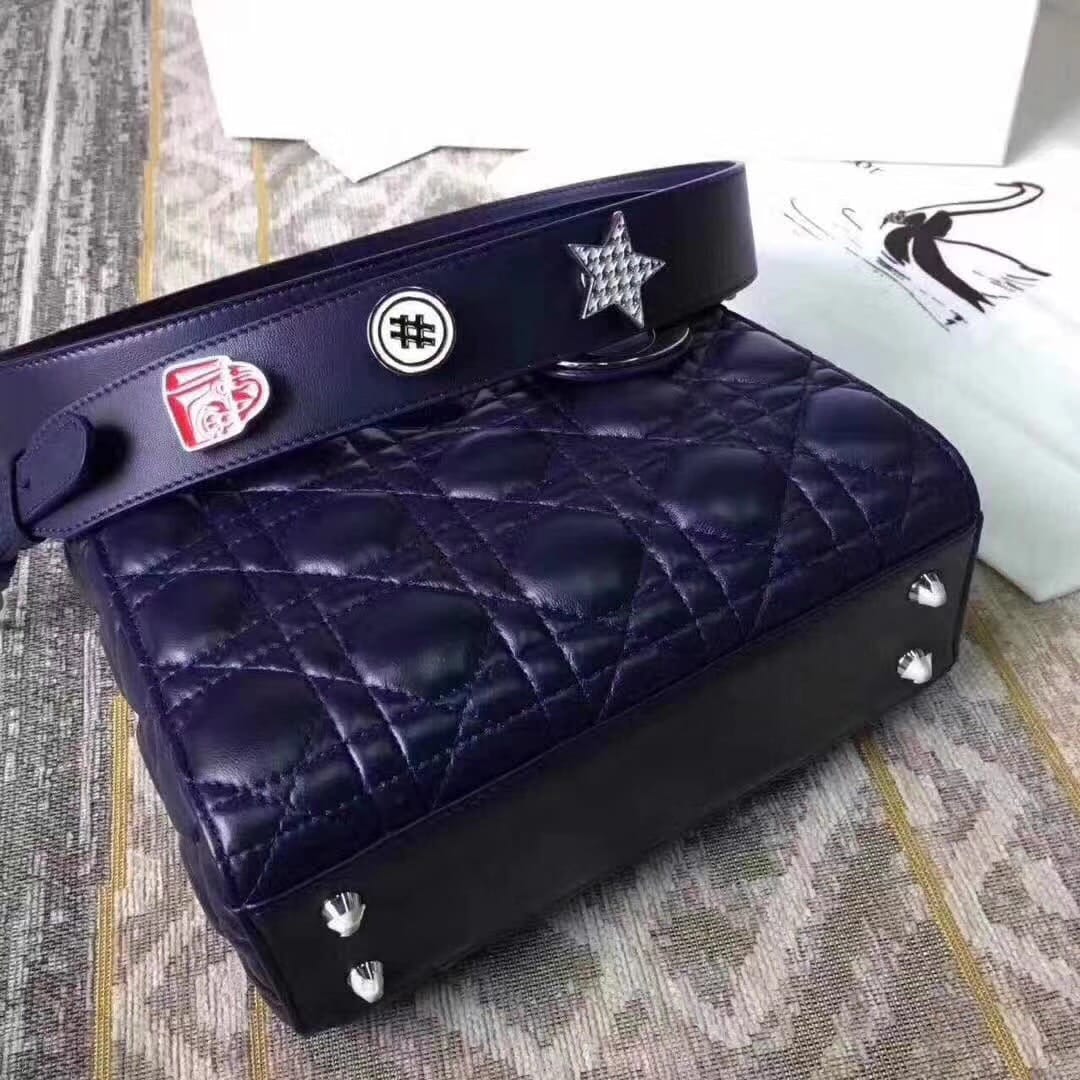 迪奥Dior??新款4格 市面最高版本! My Lady Dior?Dior迪奥首款可个性化的Lady手提包,所采用的设计理念,运用Dior Lucky Badges幸运徽章为这款经典手提包的肩背带作个性化装饰,缔造专属于自己、独一无二的Lady Dior手提包。尺寸介于三格与五格之间,开口设计改为了羊皮翻盖,增加了手部的舒适度!尺寸:20*17*9