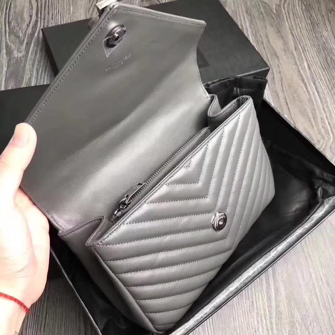 专柜品质 YSL 17新品 海外原单邮差包 灰色 山羊皮 手