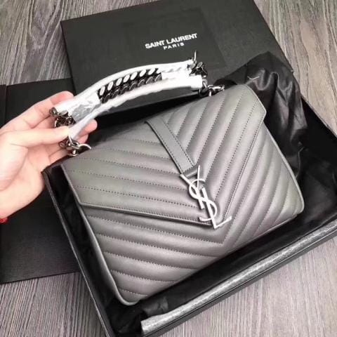 专柜品质 YSL 17新品 海外原单邮差包 灰色 山羊皮 手