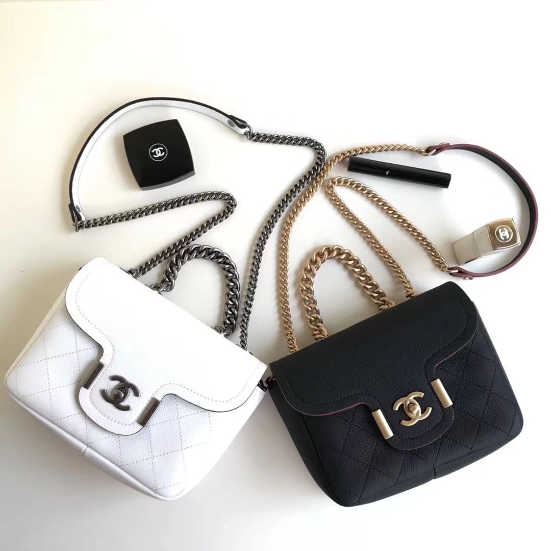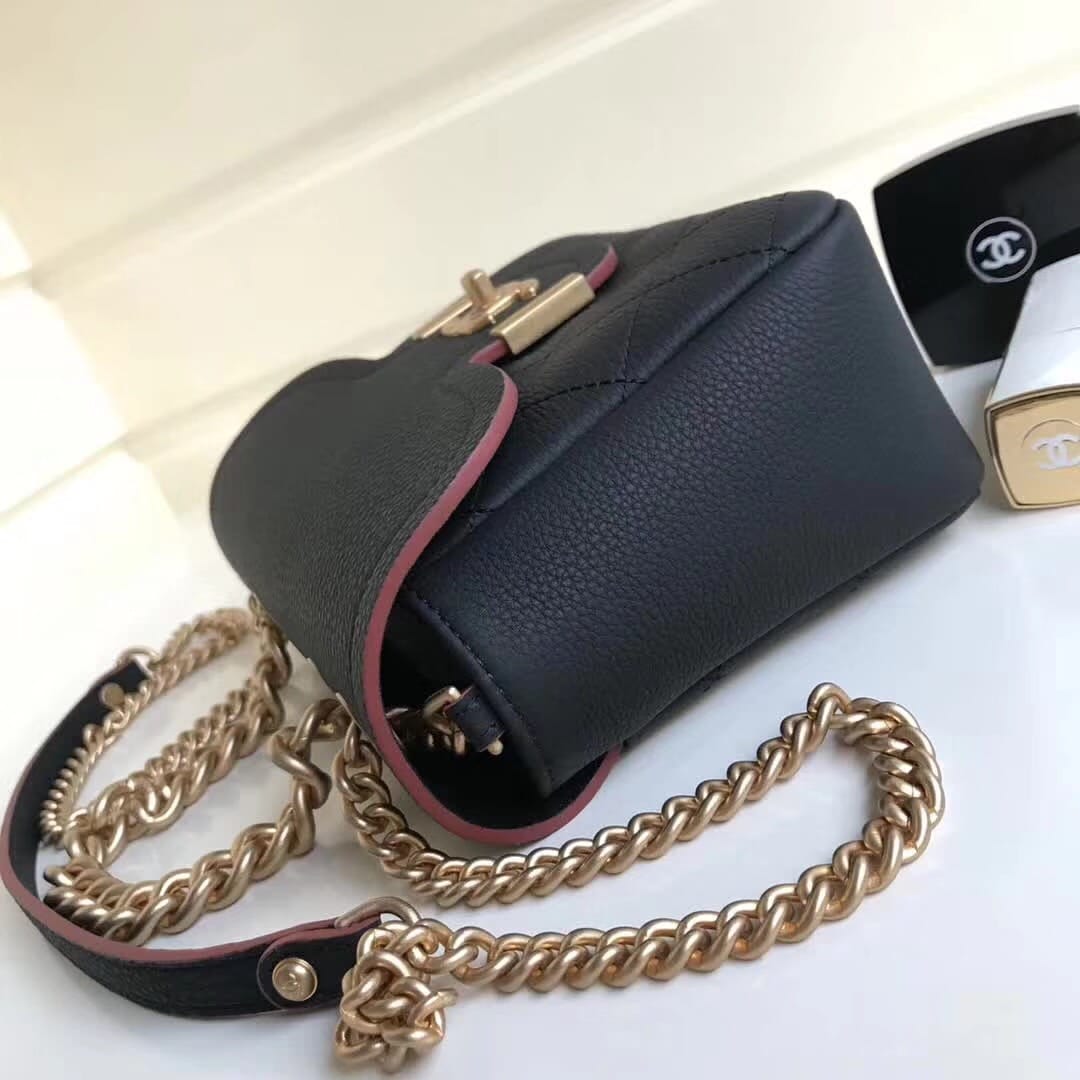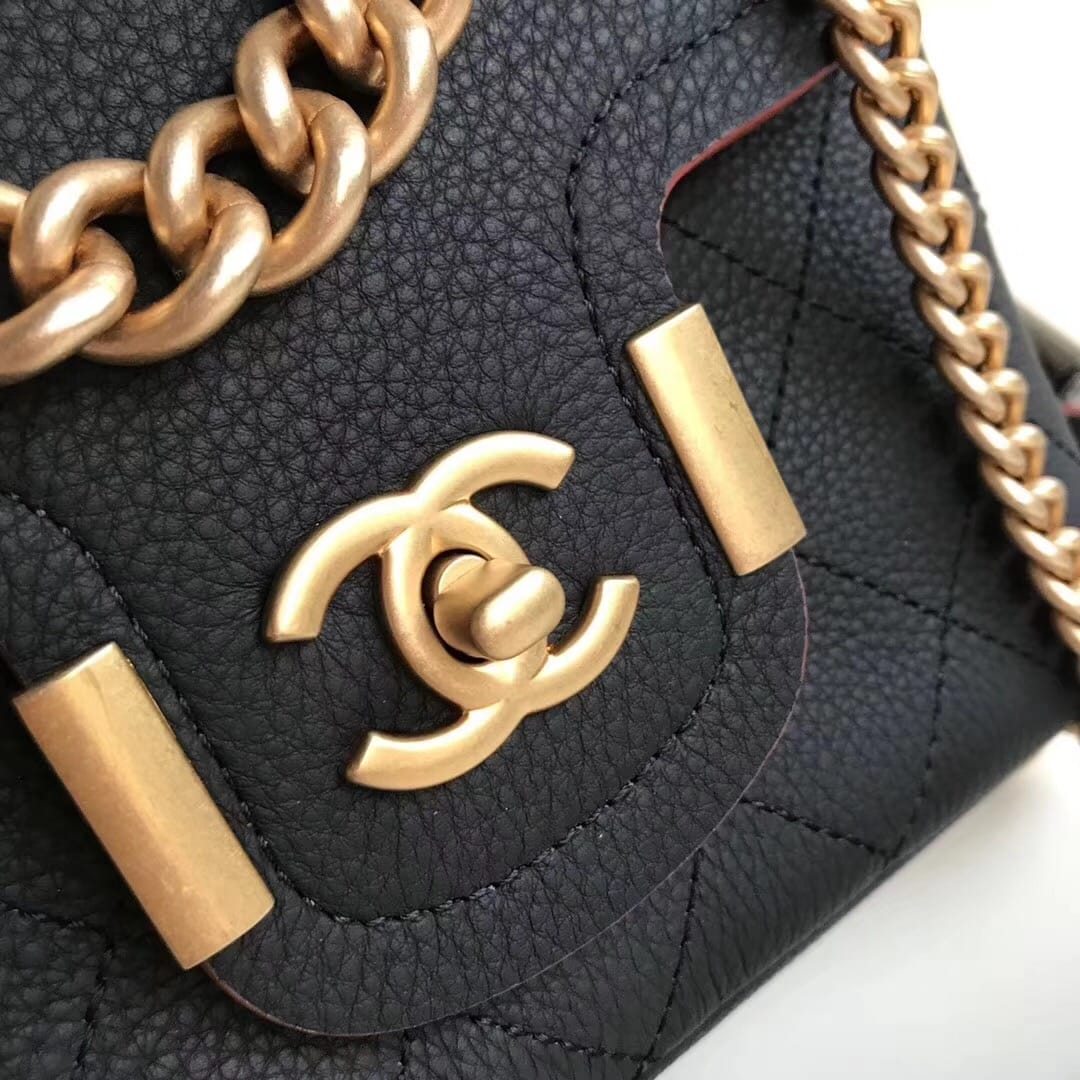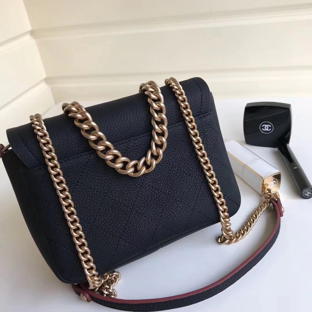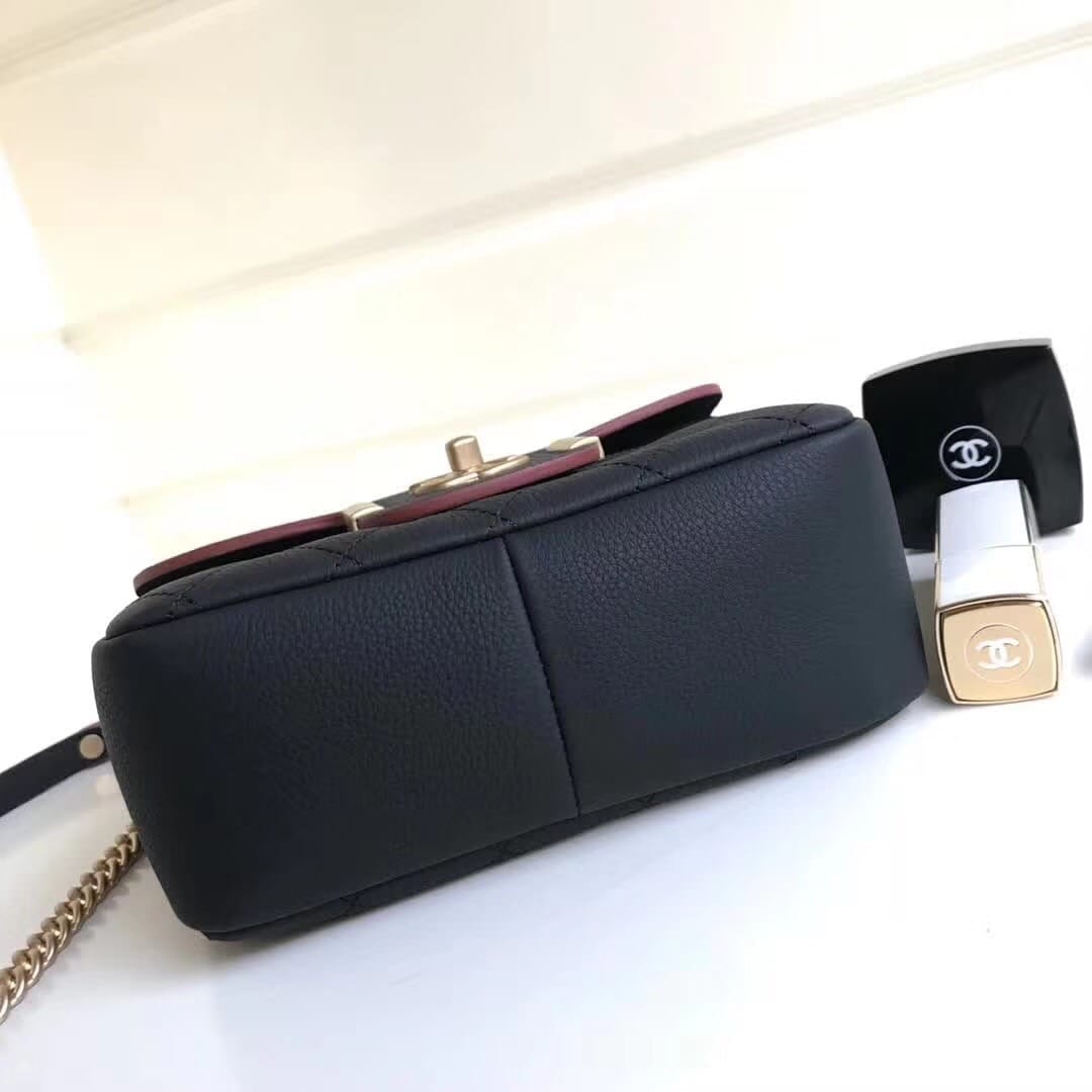 尺寸20cm进口胎牛皮。皮质手感柔软Chanel 2018早春 做舊CC logo扣 翻盖鏈條??