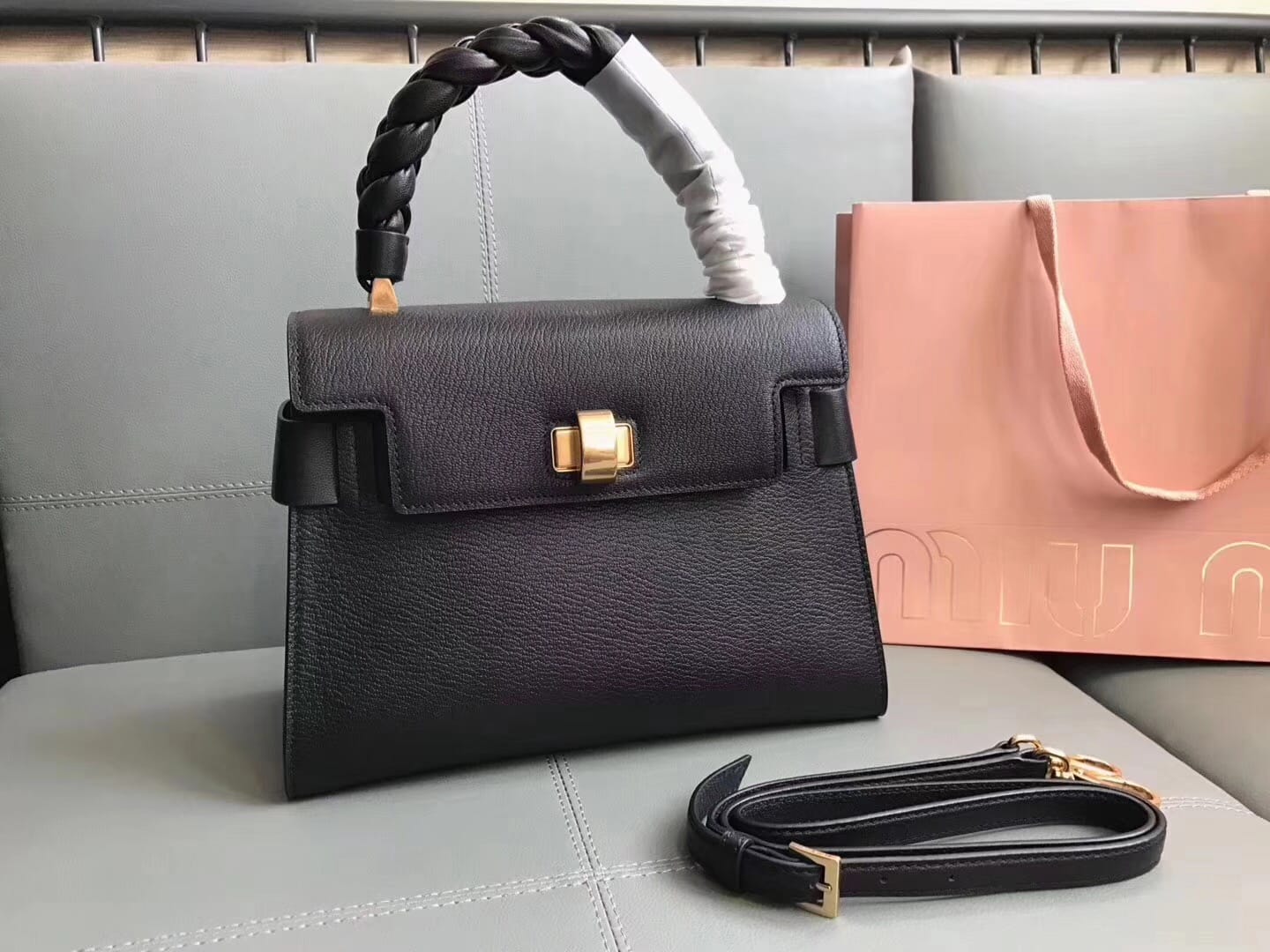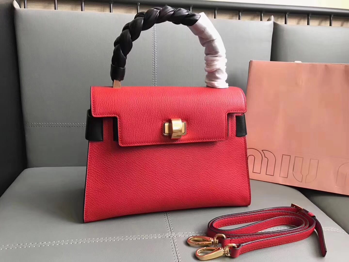 原单【MIUMIU】新款,型号5BA054,顶级牛皮山羊纹搭