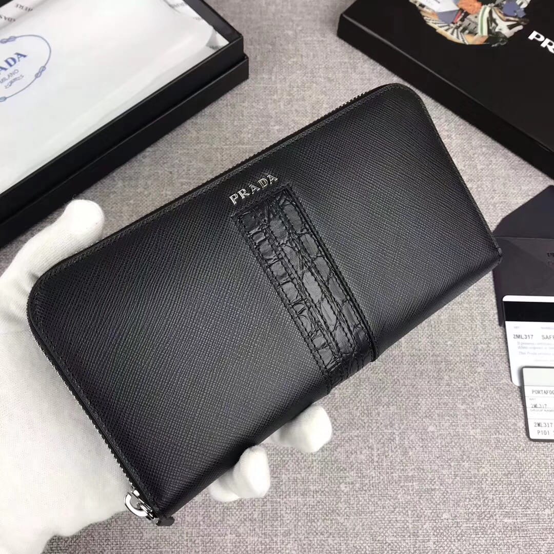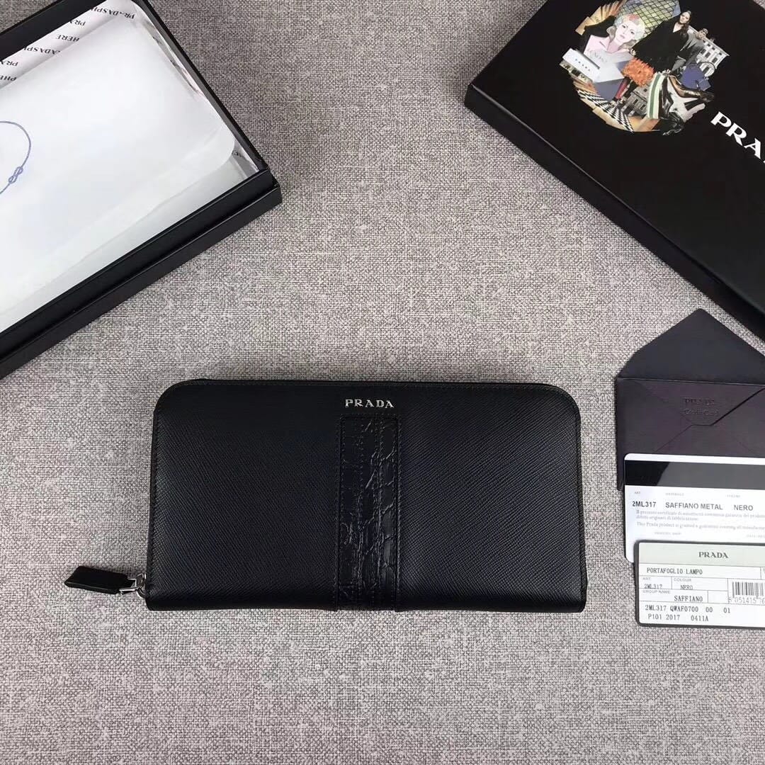 【原单代购级】PRADA男士单拉链钱包?专柜最新款式,官网同