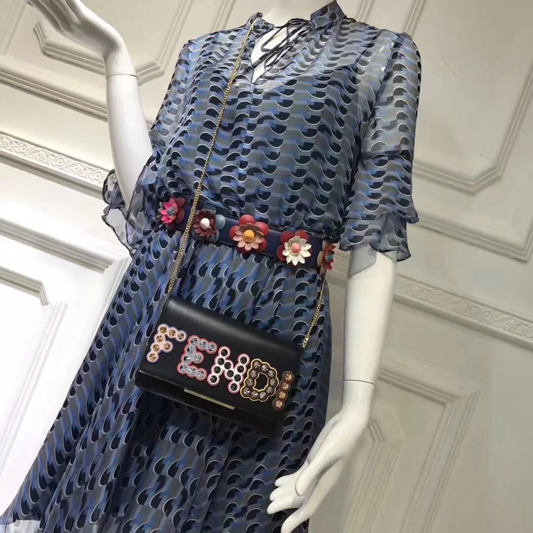 FENDI 0352 柳钉组成的FENDI字母图案,翻盖
