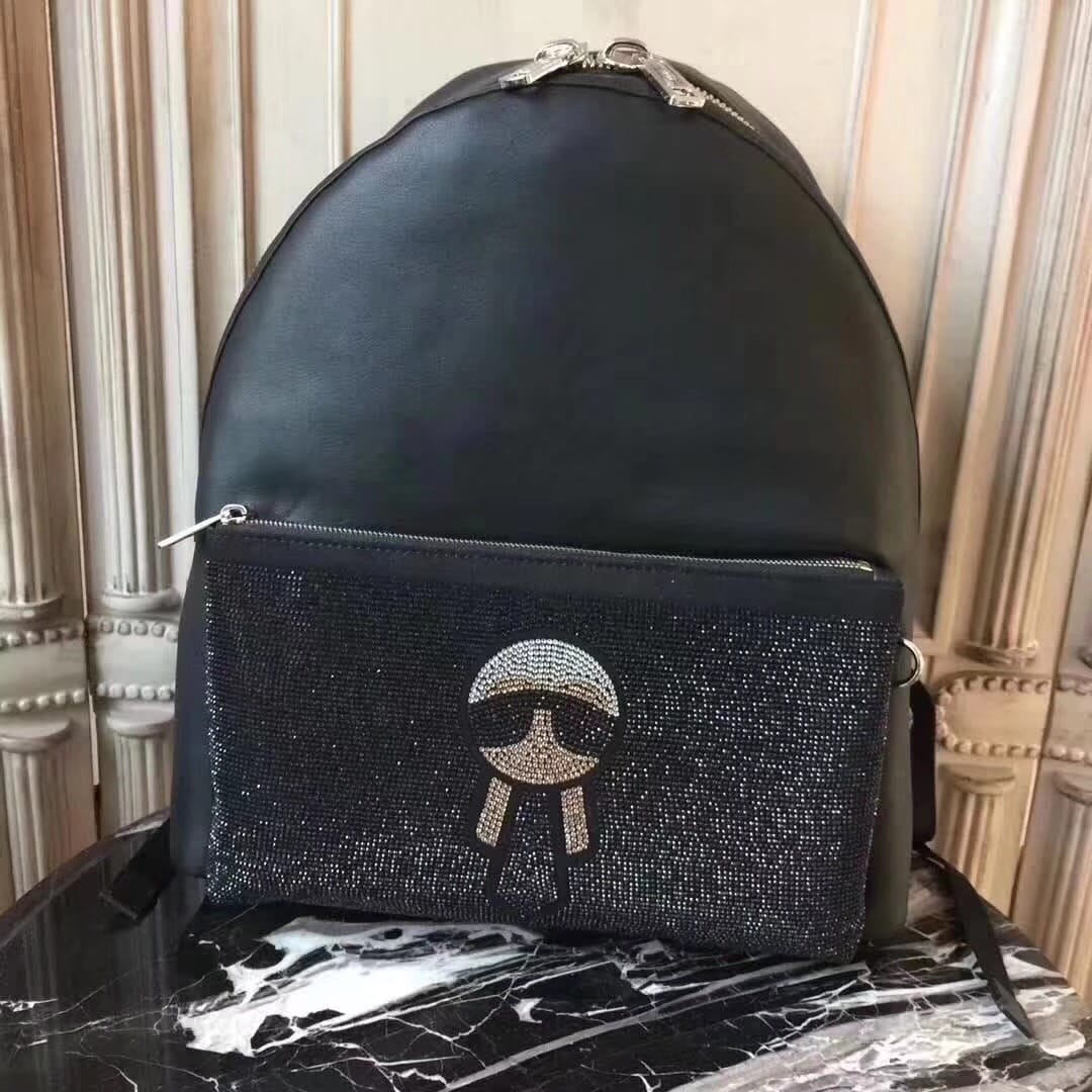 FENDI?老佛爷 背包 ?进口原厂小牛皮 闪钻镶嵌老佛爷