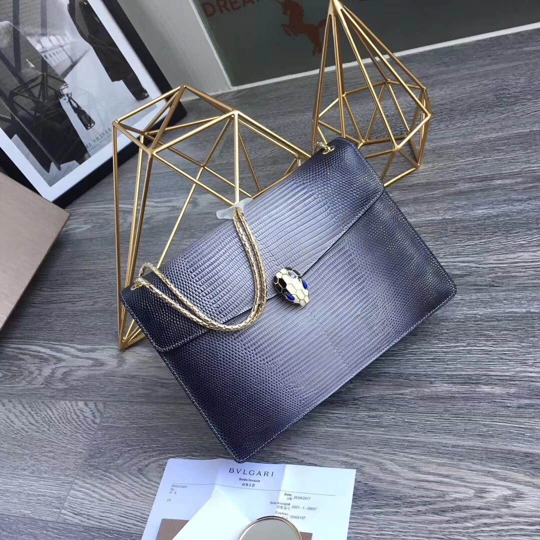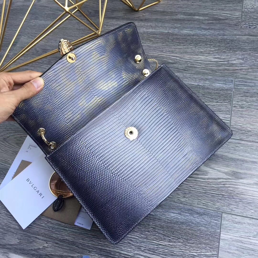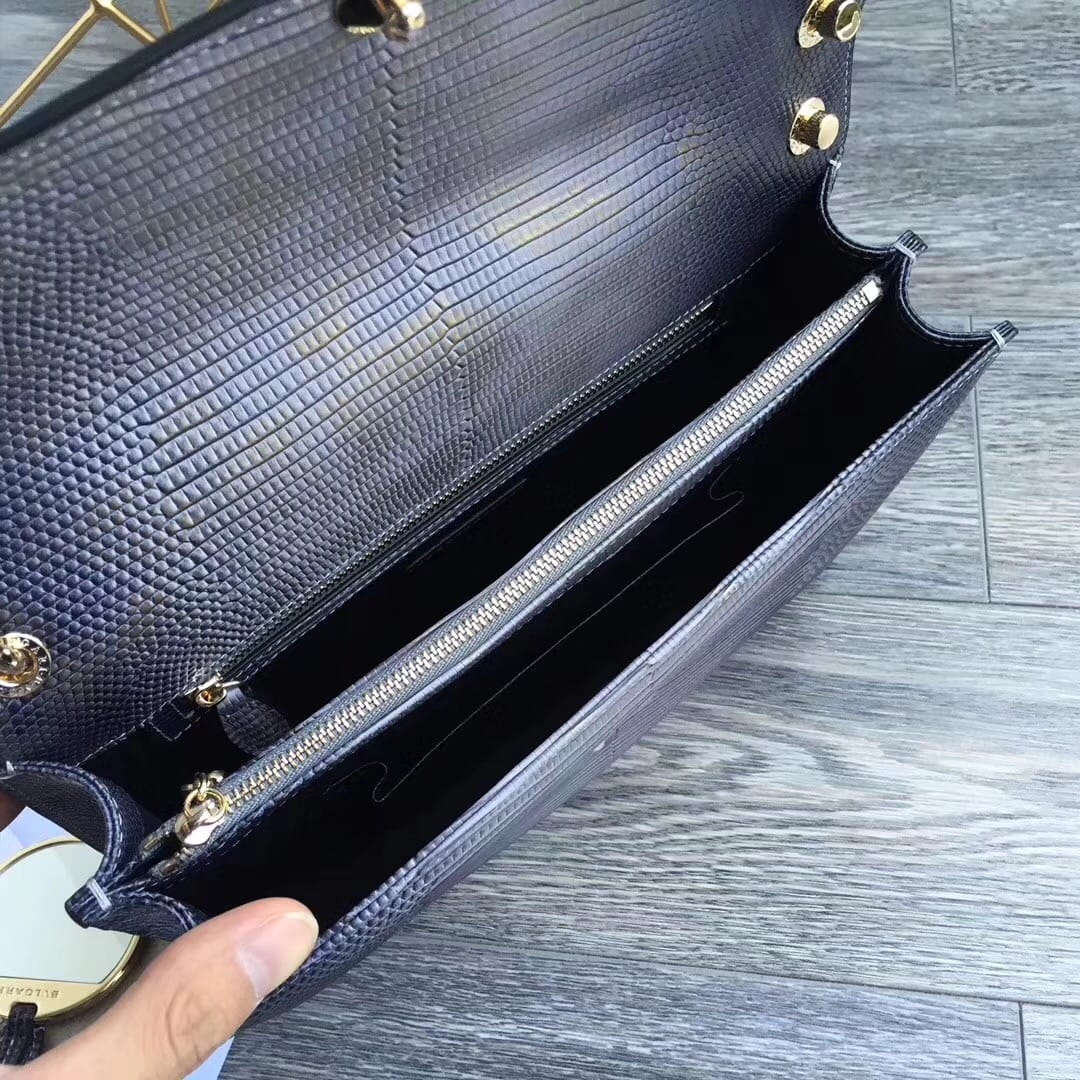 ?Bvlga*???欧洲限量版??意大利蜥蜴纹宝石青??幻彩