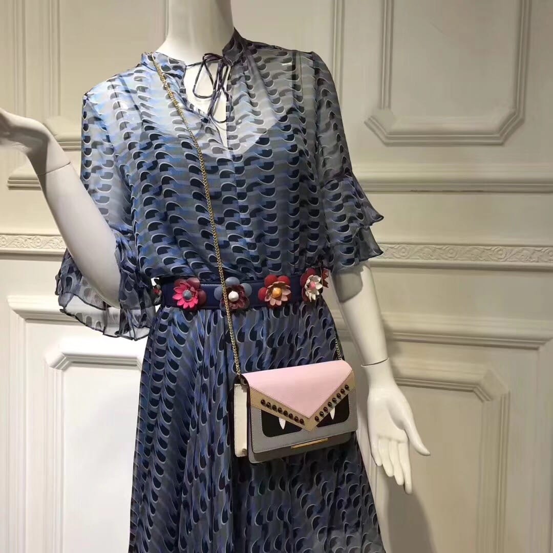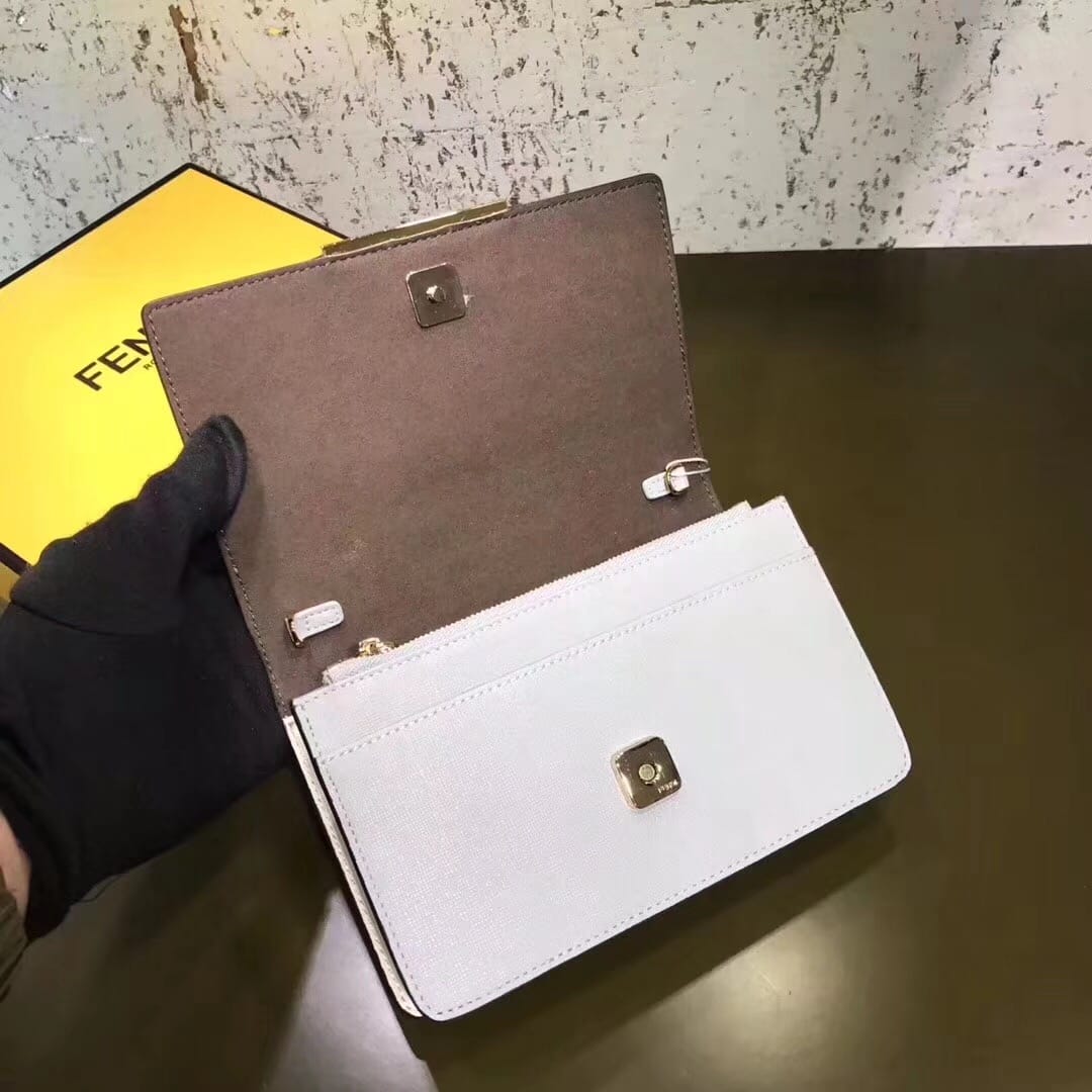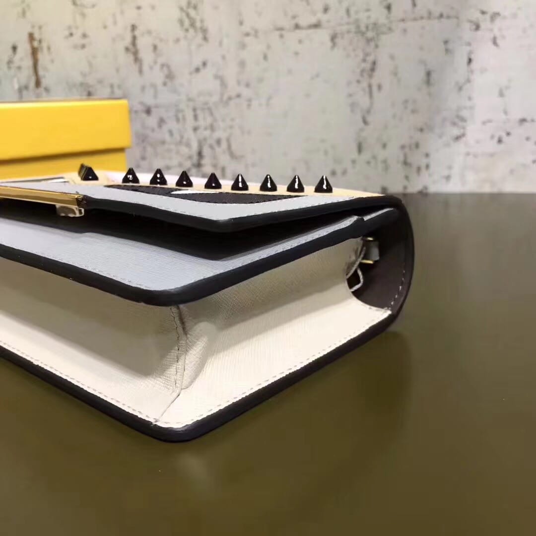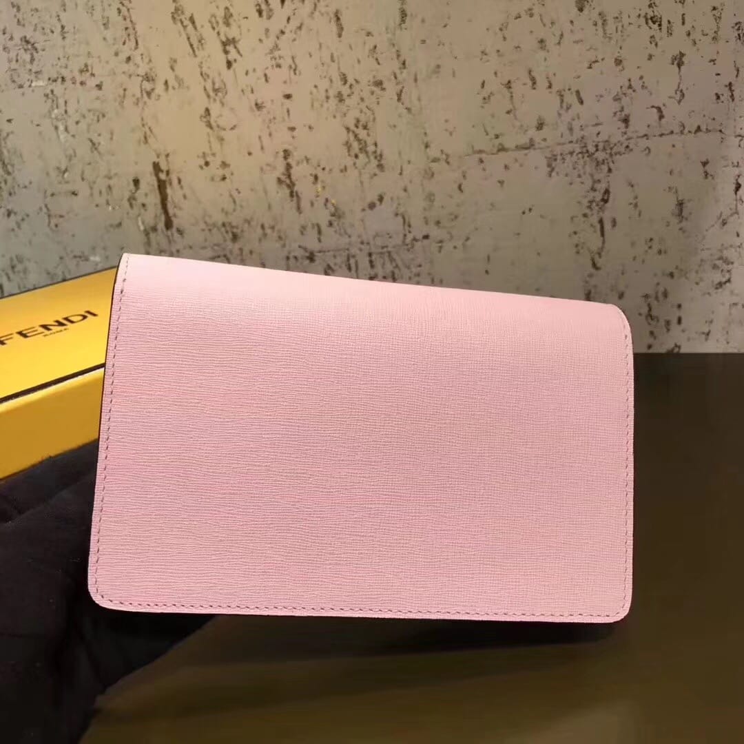 Fendi 0347 WALLET ON CHAIN TUBE十字纹?牛皮链式皮夹,灵感源自经典的BAG BUGS主题,生动活泼小怪兽表情[调皮]平袋和6个卡片夹层的皮夹,可拆卸长链条肩带,适合斜挎在身上或当作手拿包。18cm(全套包装发票)
