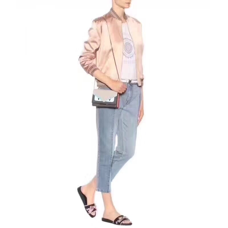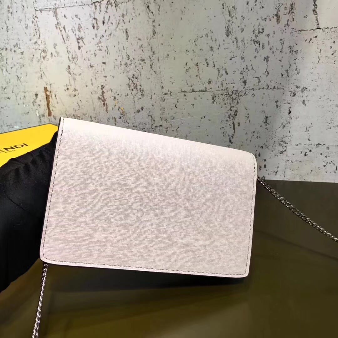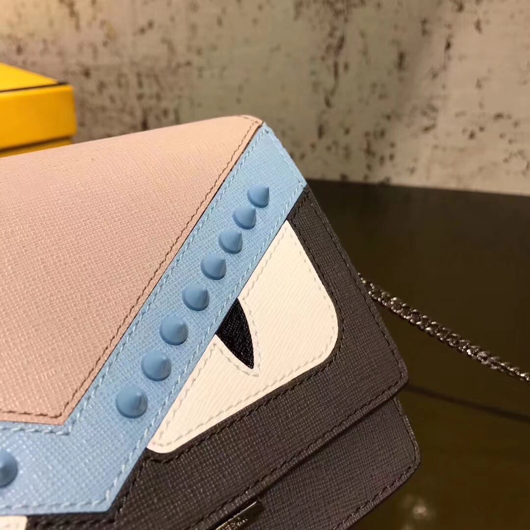 Fendi 0347 WALLET ON CHAIN TUBE十字纹?牛皮链式皮夹,灵感源自经典的BAG BUGS主题,生动活泼小怪兽表情[调皮]平袋和6个卡片夹层的皮夹,可拆卸长链条肩带,真空电镀五金,适合斜挎在身上或当作手拿包。18cmF(全套包装发票)