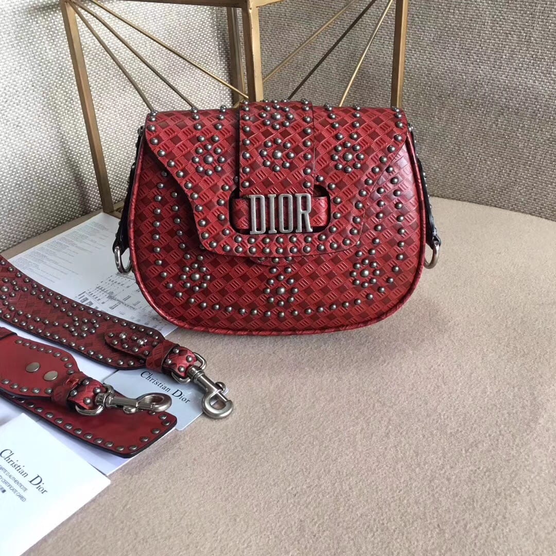 Dior?正品复刻-原单?M6501红色铆钉 采用顶级小牛皮