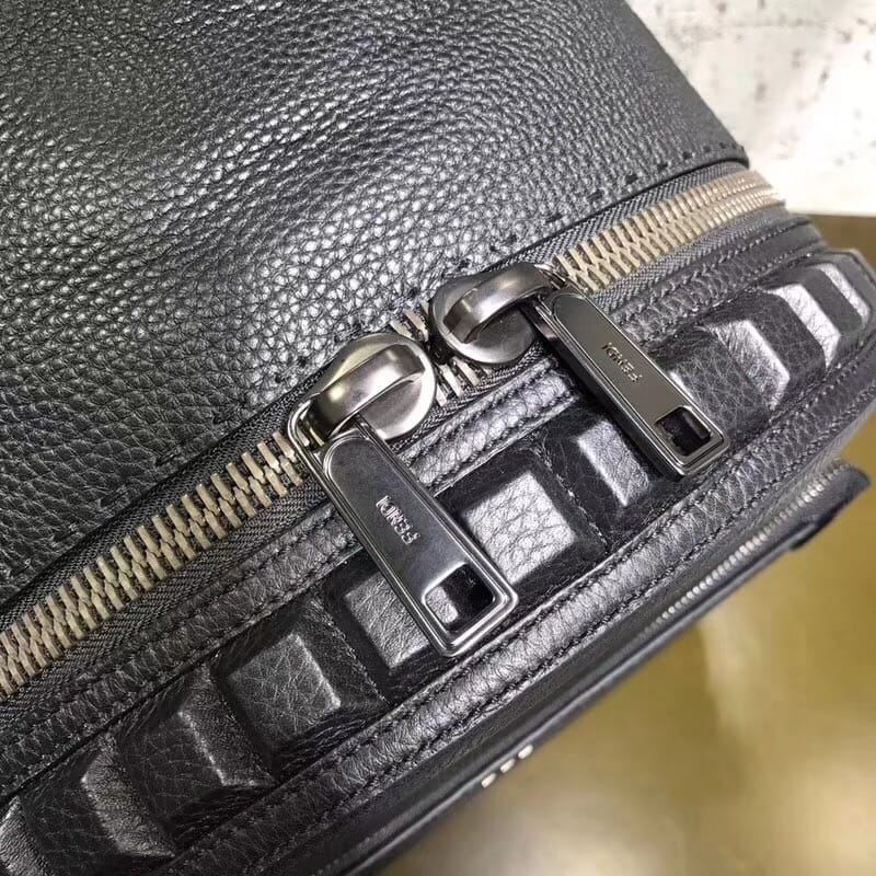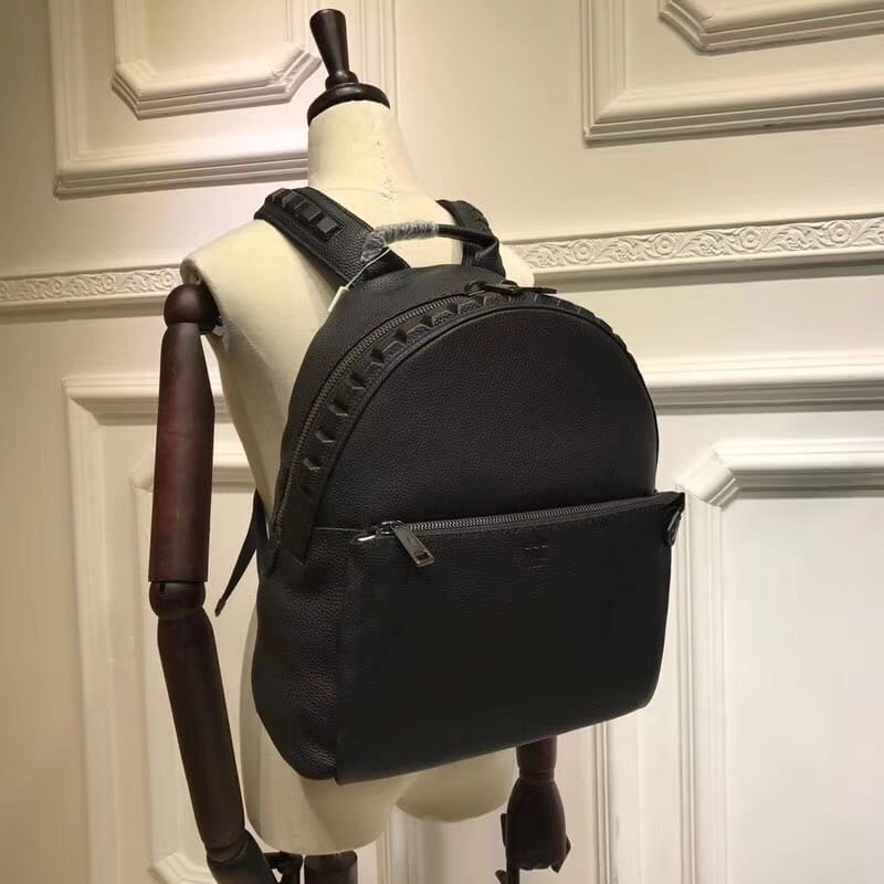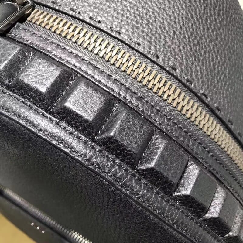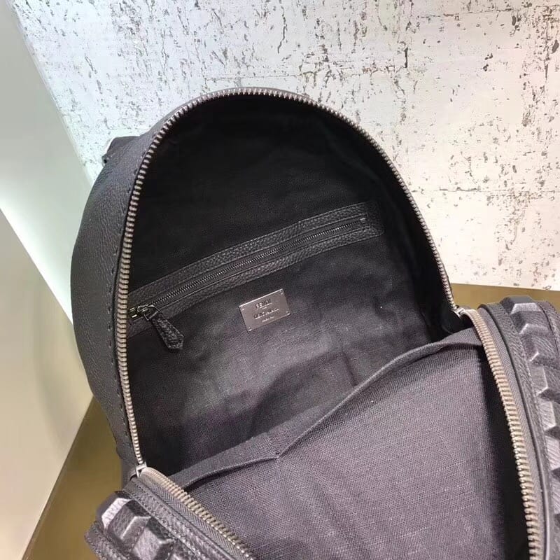 FENDI 2263 柔软南非小牛??皮背包,饰配四方钉,皮提手,饰配方钉于顶部,方可调整长度、背包内外均设有拉链口袋。34cm(礼品袋发票???)