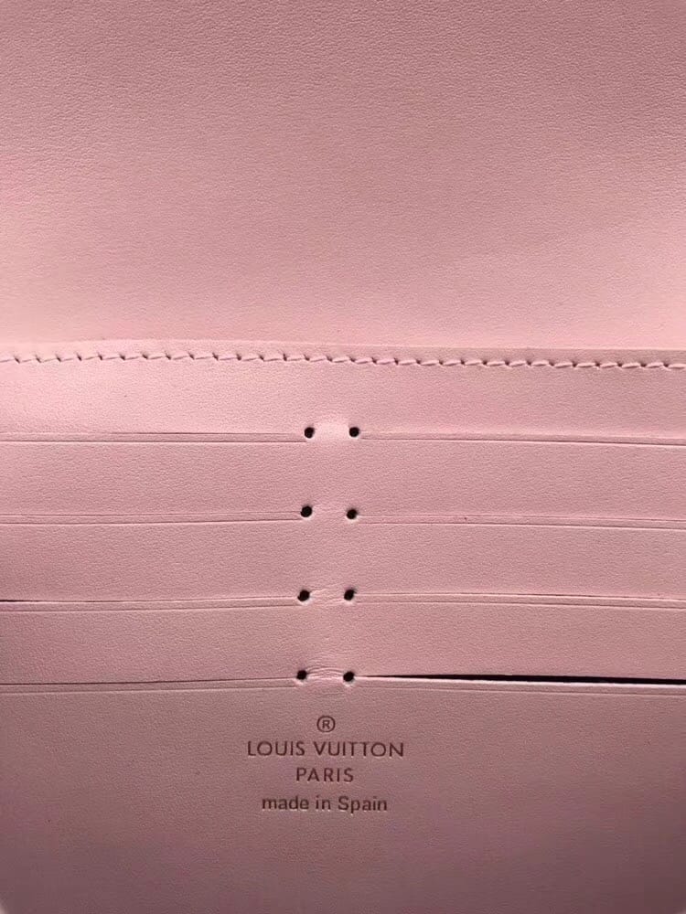 M64586?【特别介绍】?海外特供(专柜货)?此款钱夹以标志性帆布搭配五彩缤纷的小牛皮,呈现出清新明丽的外观。裹有皮革的饰钉风格柔美,为一大设计亮点。汇集多个实用元素,包括1个带有超细纤维内衬的手机软袋。尺寸:20.0X11.0X3.0cm,