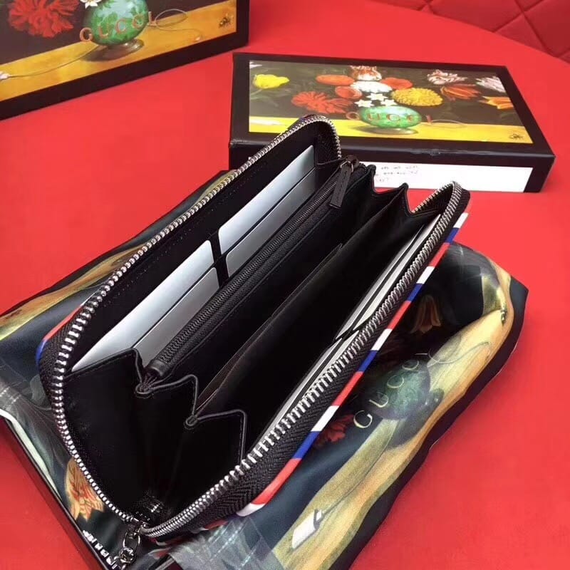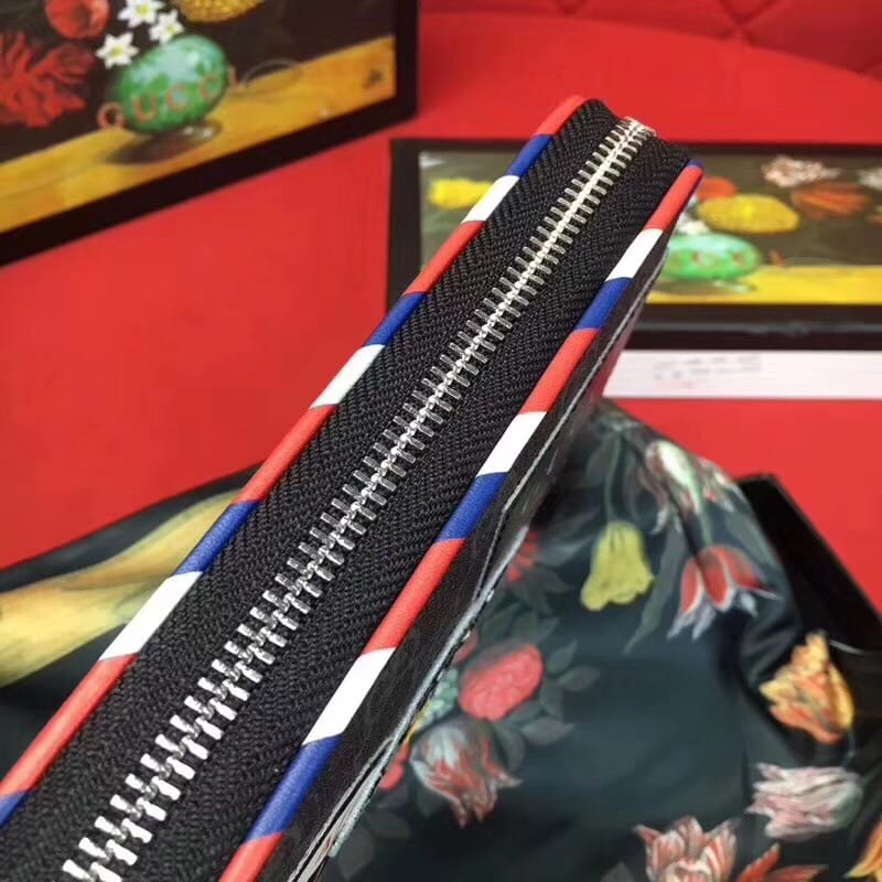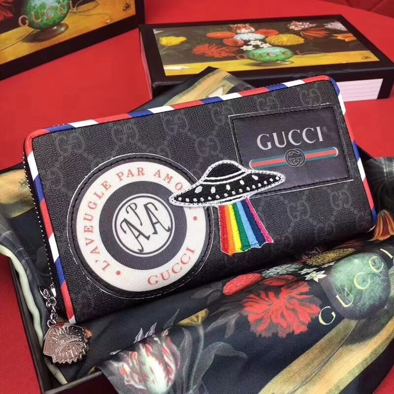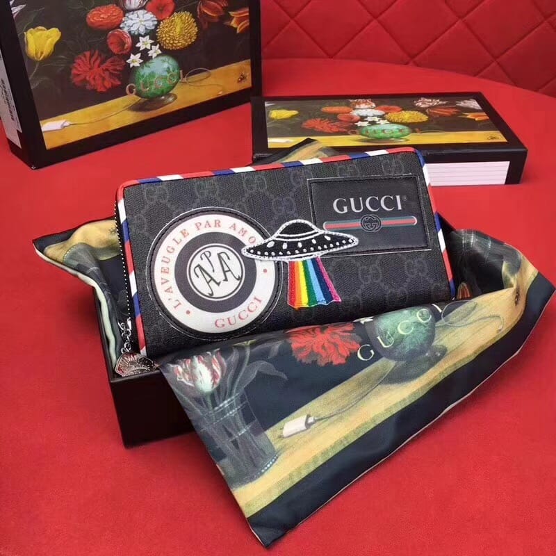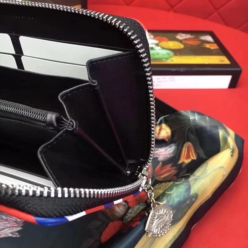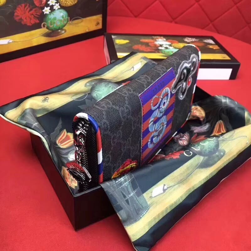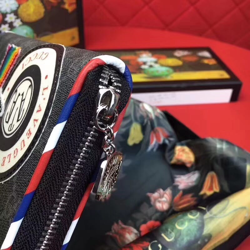款号:476342 到货??G家最新款单拉链到货,带有GG图案和多种时尚刺绣和复古风格细节和手工贴制印花!精心手工制作独一无二!专柜品质顶级意大利进口纹牛皮 ?白叻配件金属 !尺寸:长19x高11x宽2.5cm 颜色:黑PVC/黑皮【独家实拍图】