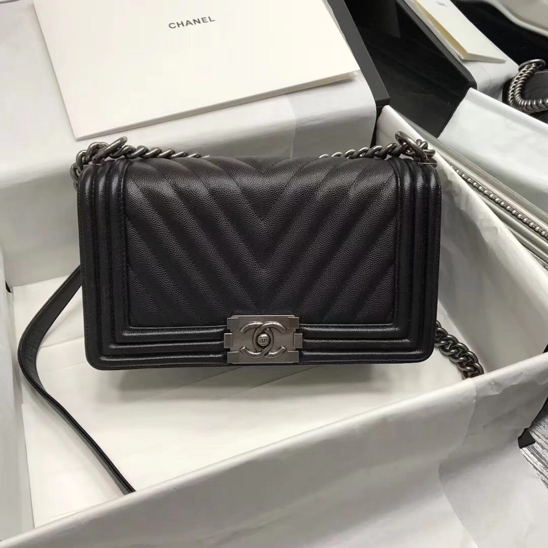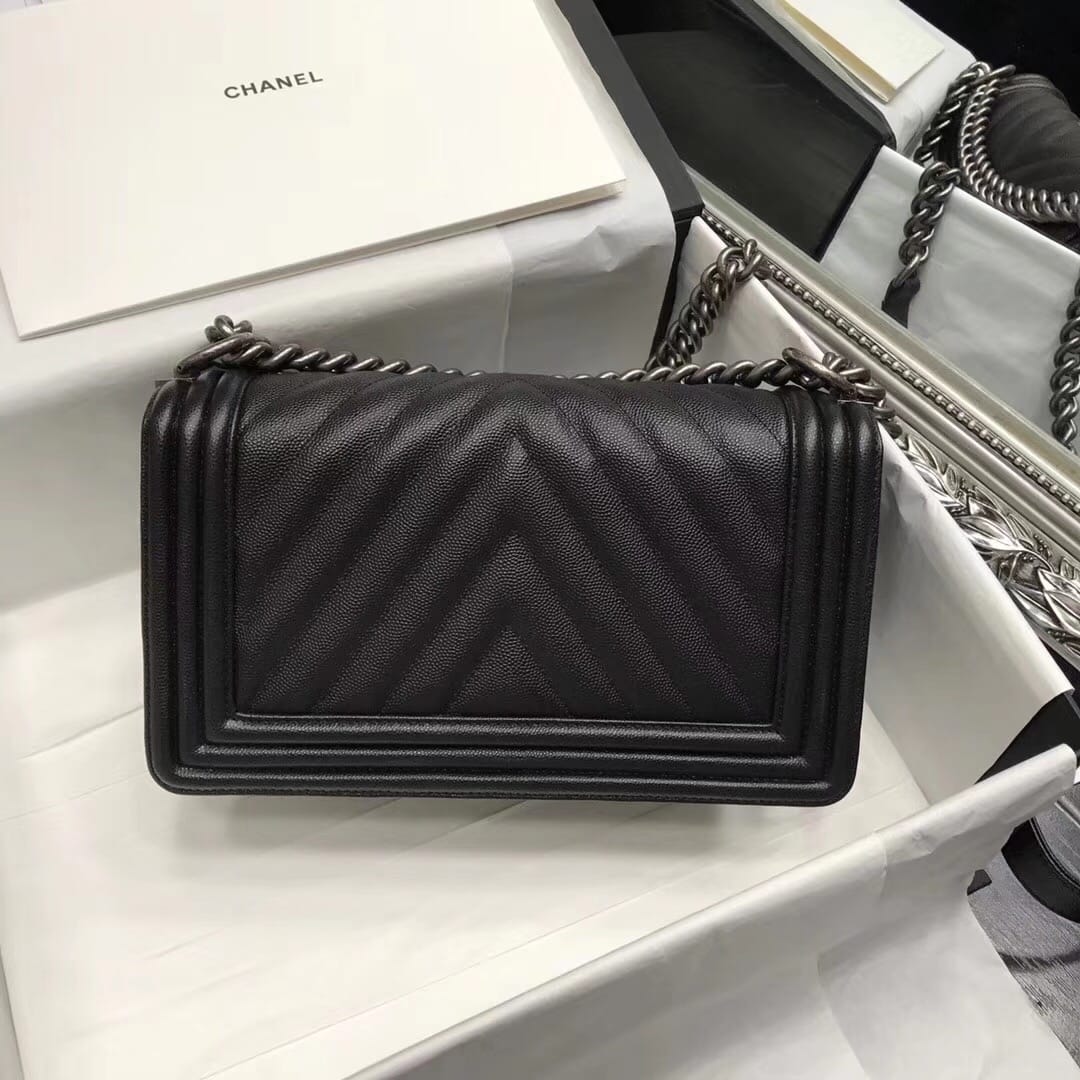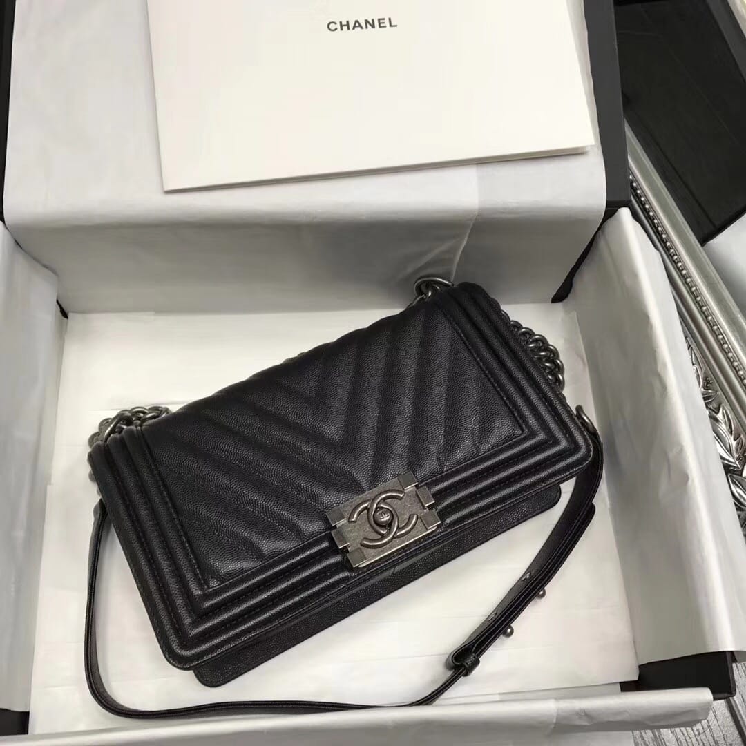 Chanel香奈儿boy小球纹V字绣25cm黑色[愉快]V字