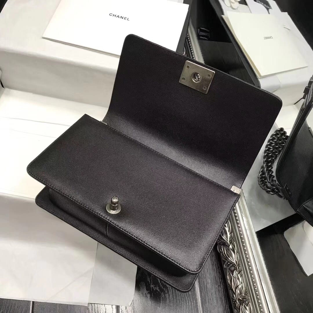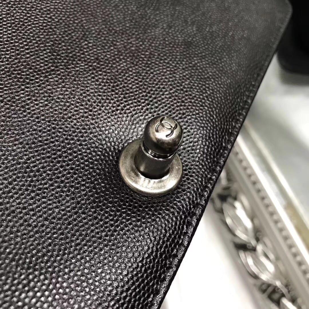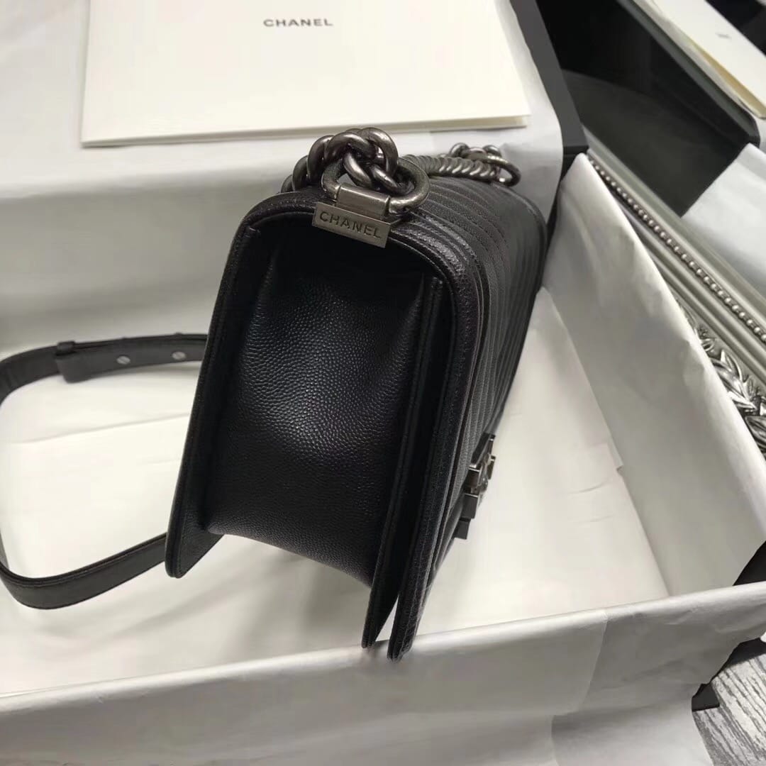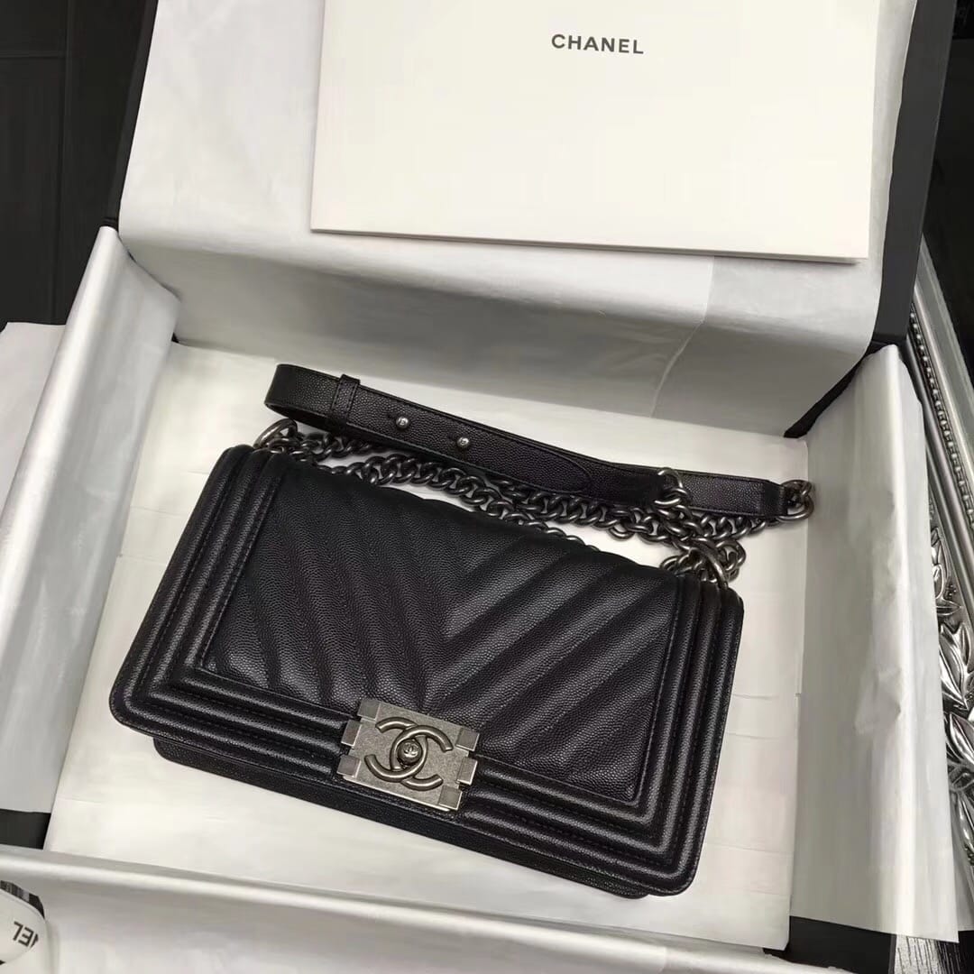 Chanel香奈儿boy小球纹V字绣25cm黑色[愉快]V字