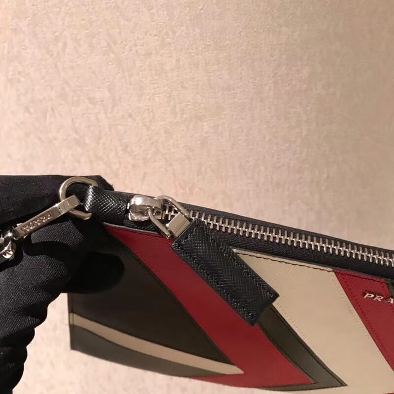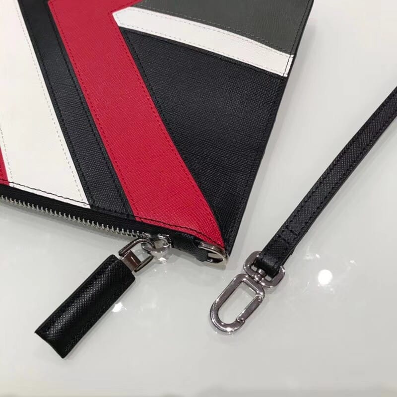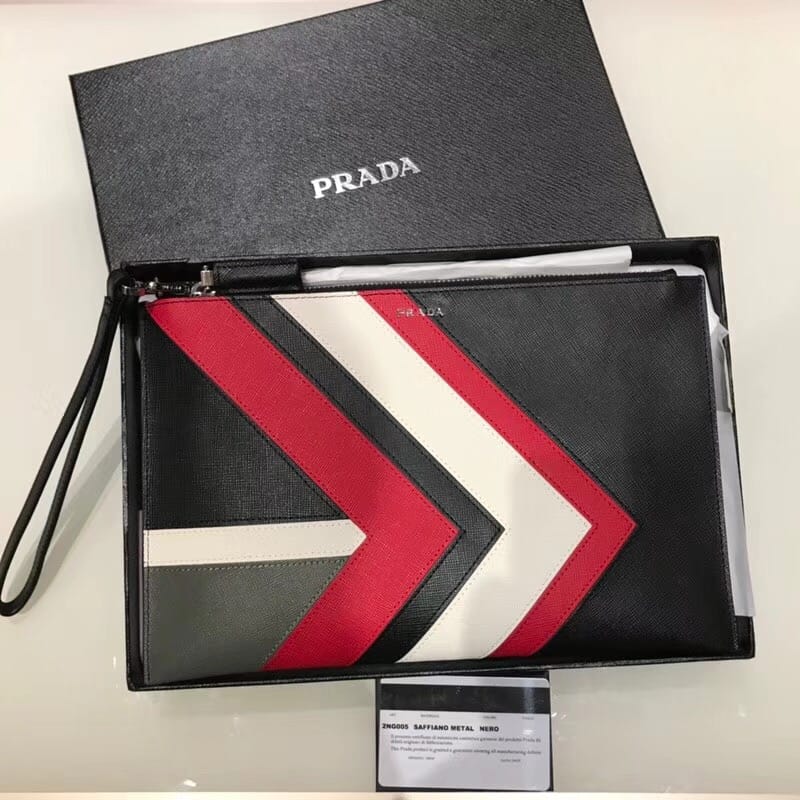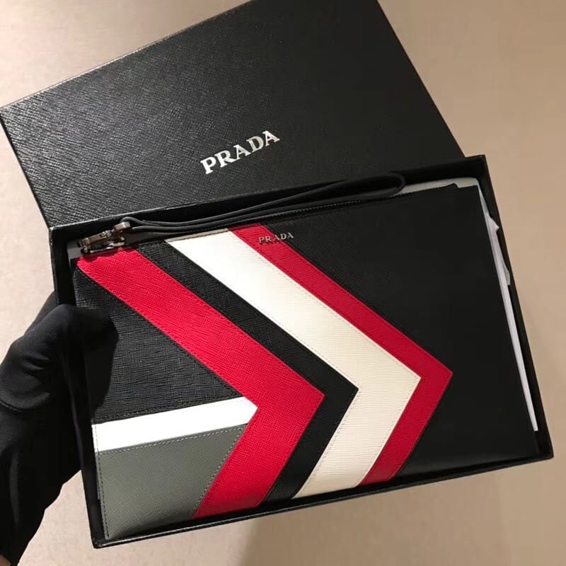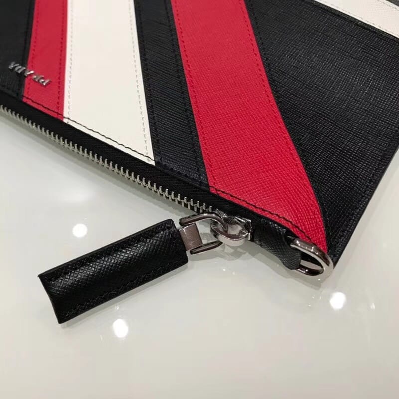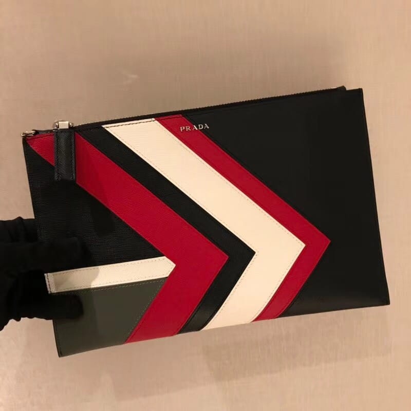 P家??男士十字纹手包,黑色,原单品质,型号2NG005,配可拆式手腕带,一个拉链夹层,六个卡位插袋,尺寸28×18cm,配专柜包装,代购热卖款?