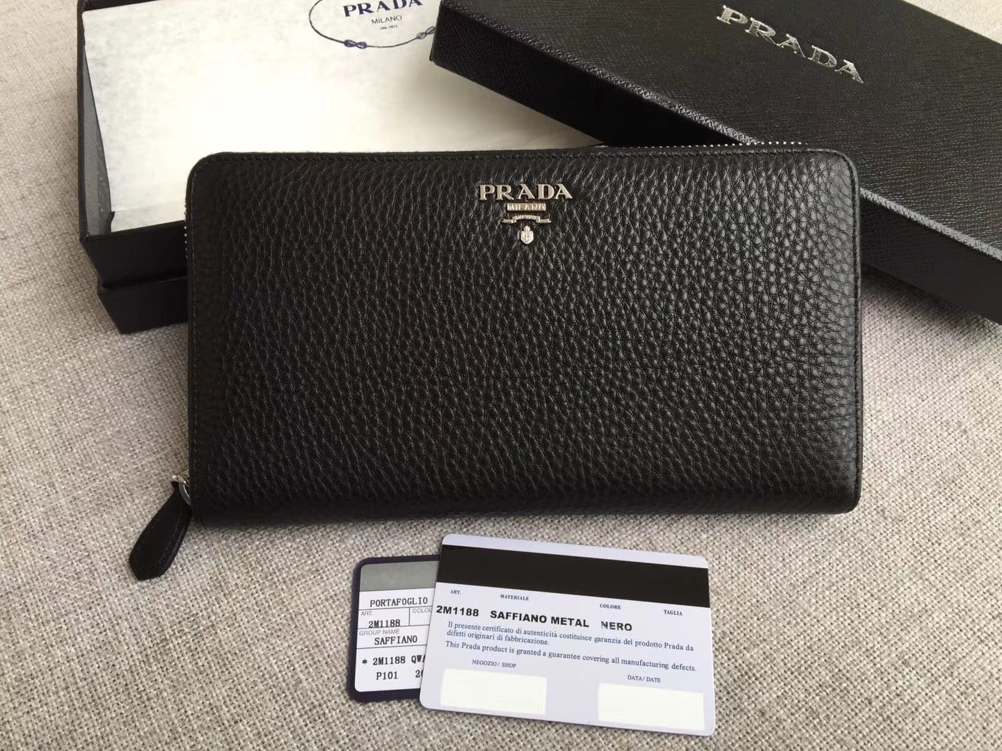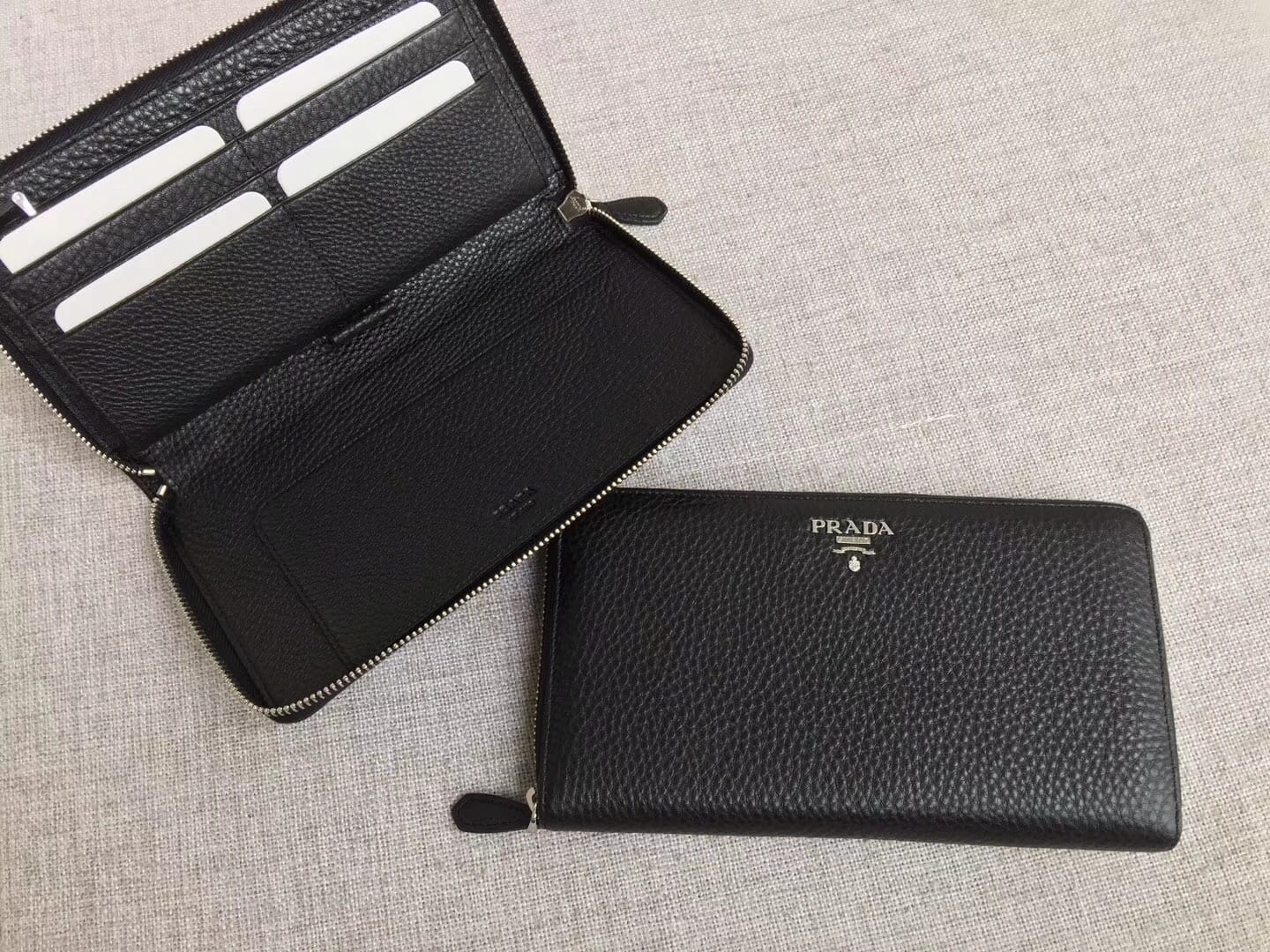 P家??男士短款钱包,黑色,型号2M0513,十字纹牛皮制作