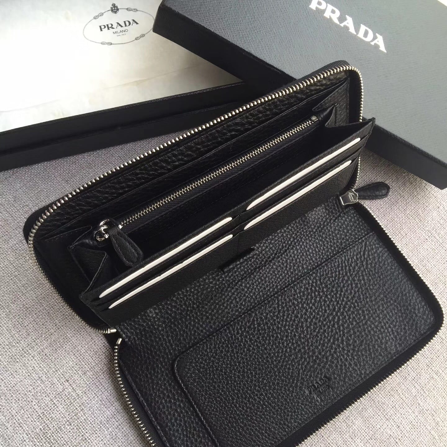 P家??十字纹双拉款男士手包,黑色,原单品质,两个拉链隔层,