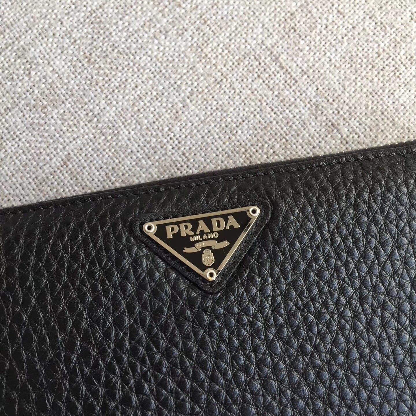 P家??十字纹双拉款男士手包,黑色,原单品质,两个拉链隔层,