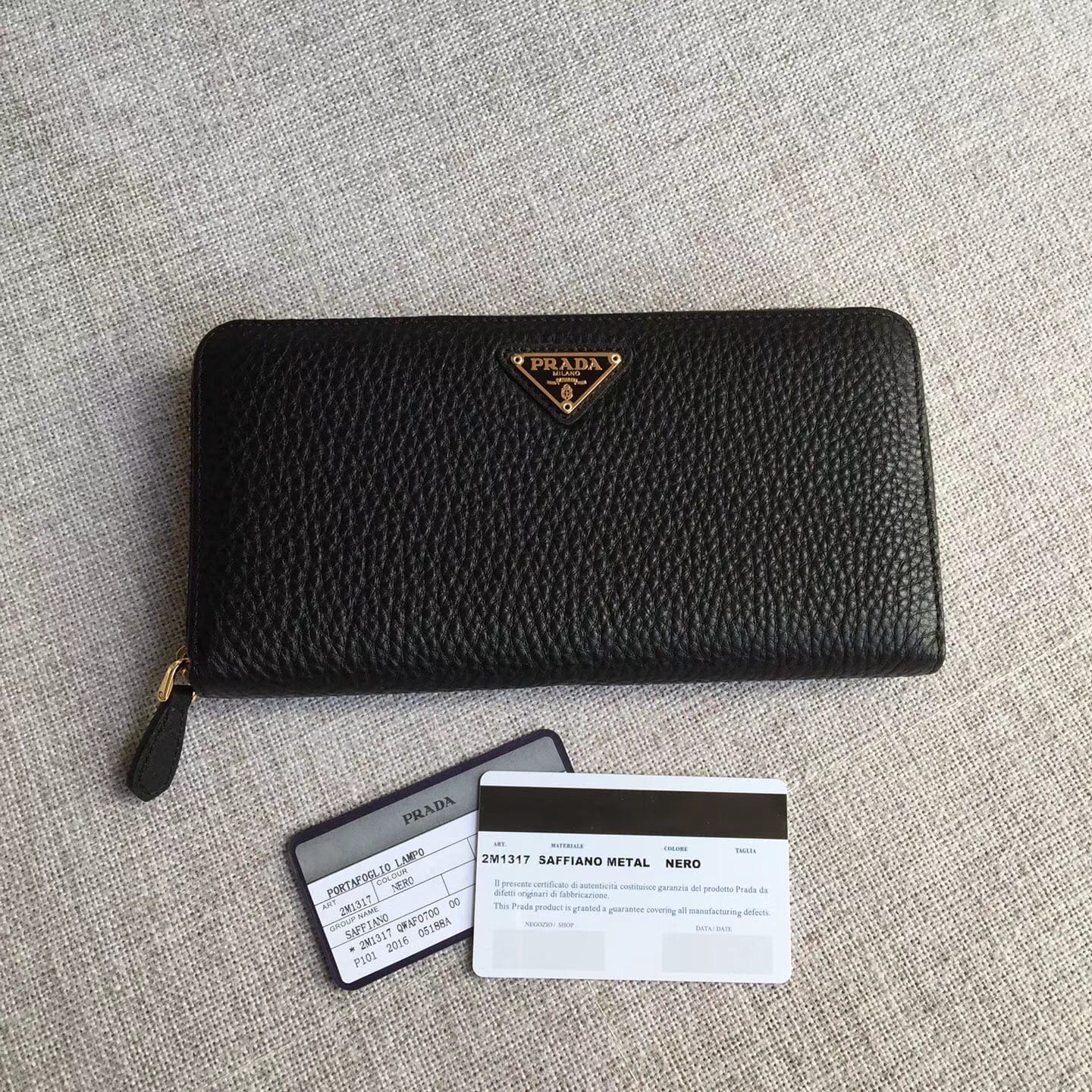 P家??鹿纹皮单拉链皮夹,型号1ML506,中性男女通用款,