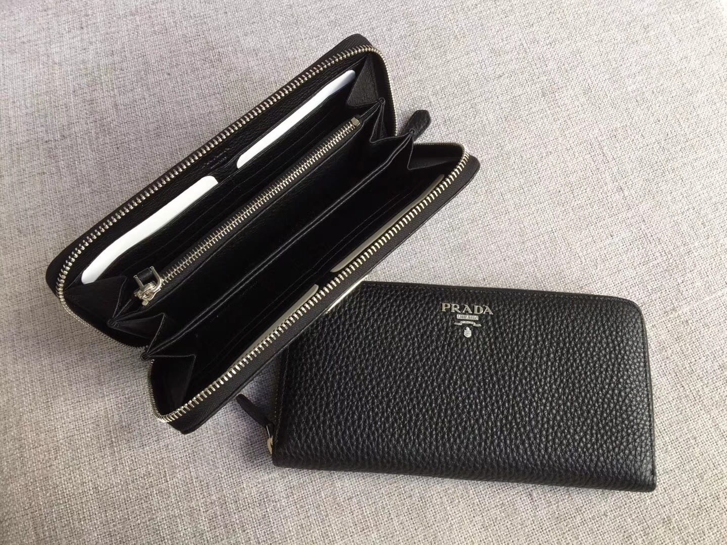P家??鹿纹皮单拉链皮夹,型号1ML506,中性男女通用款,
