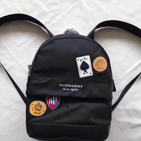 B家新款双肩包,装饰趣味徽章嵌花,设计有多个口袋。可调试加垫