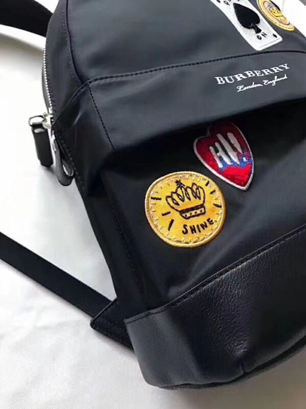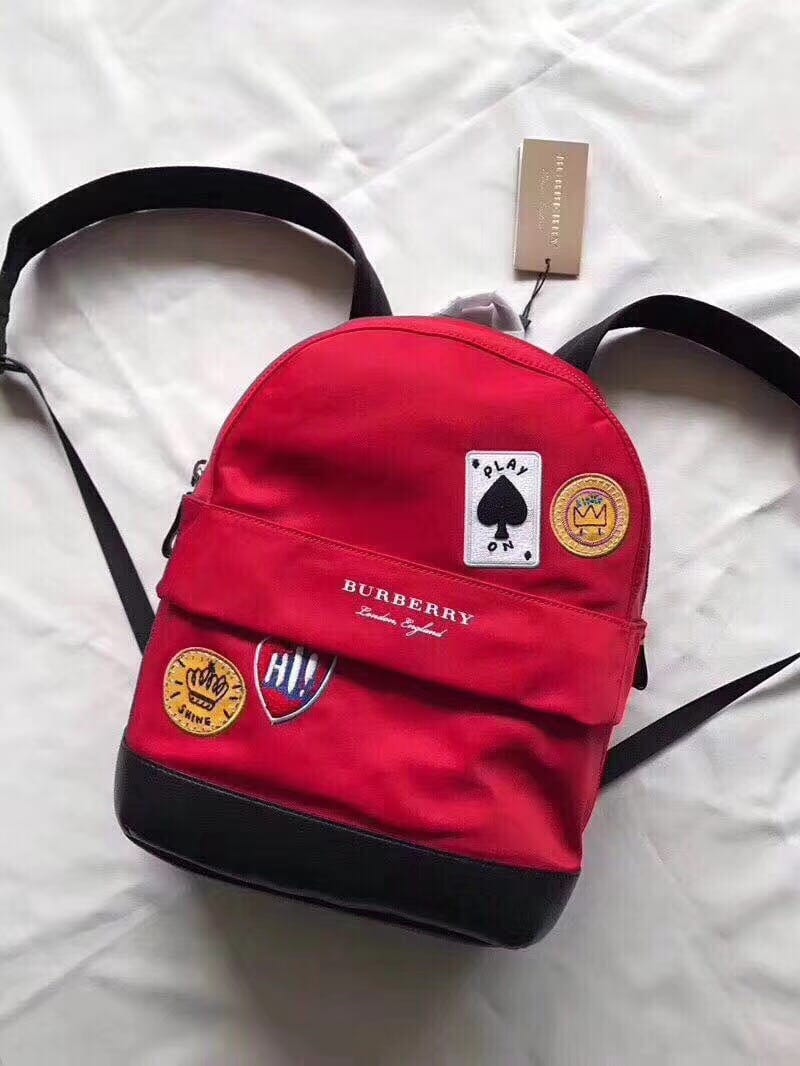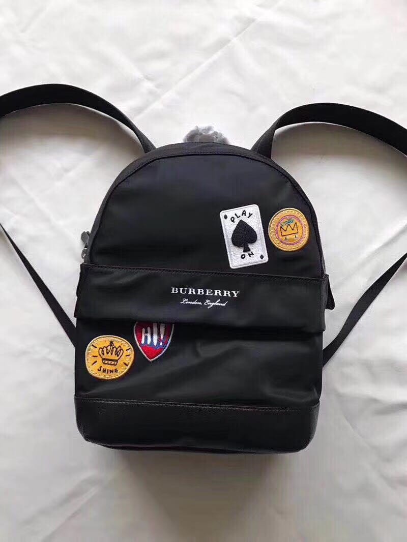 B家新款双肩包,装饰趣味徽章嵌花,设计有多个口袋。可调试加垫