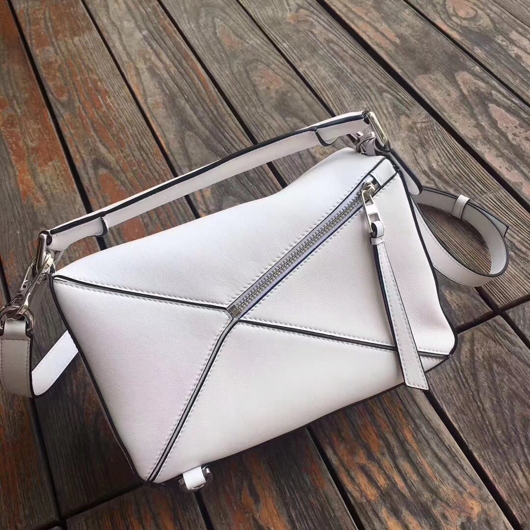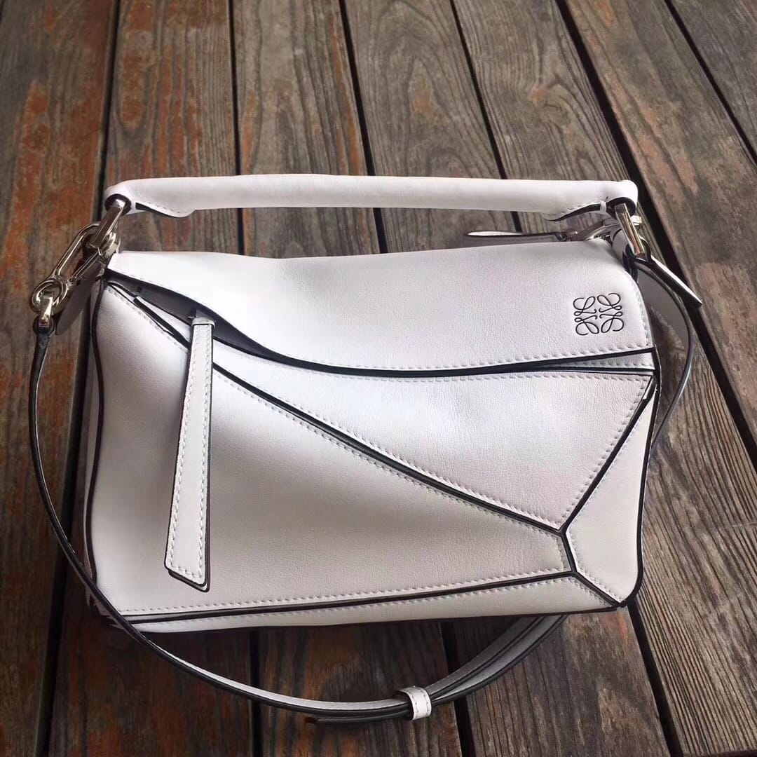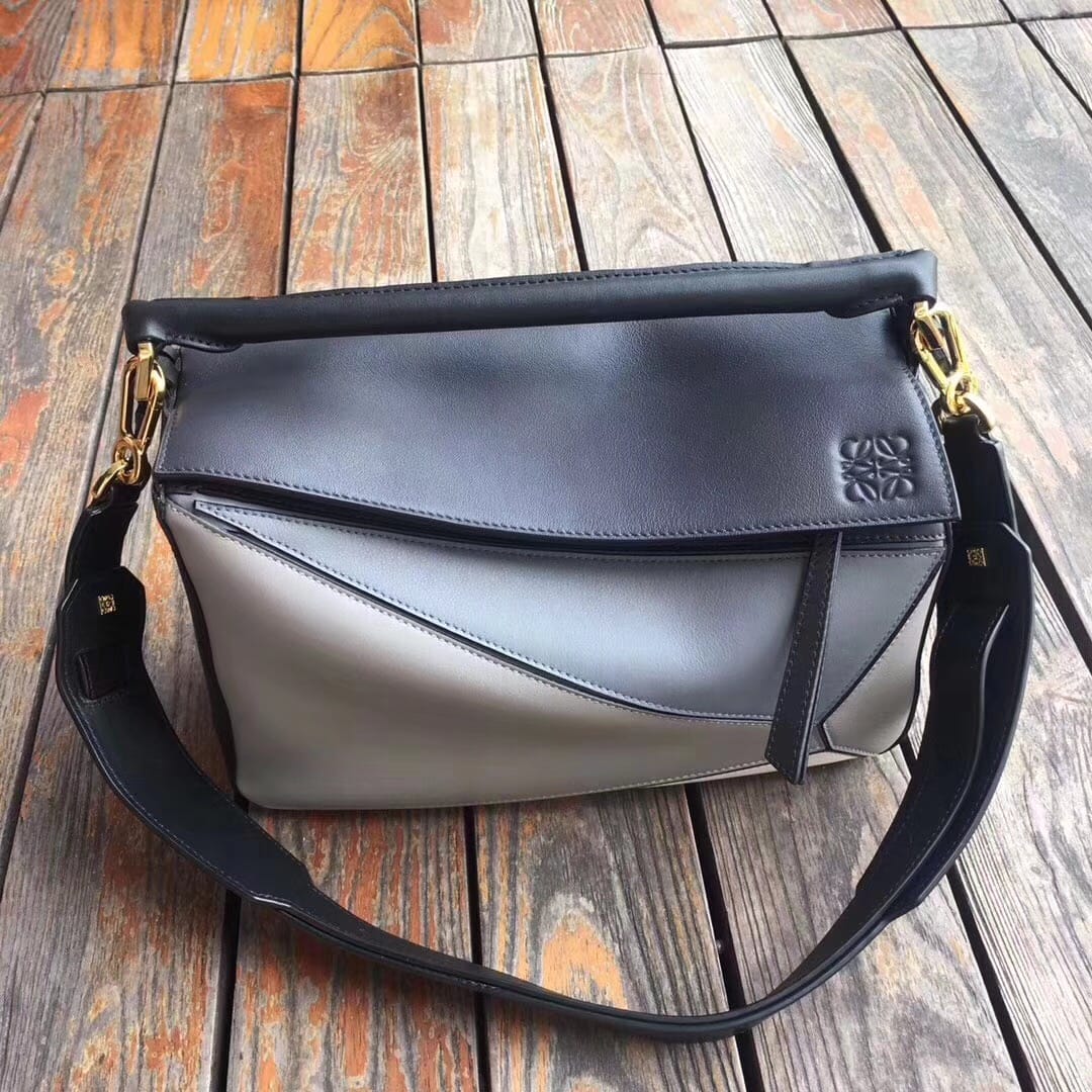 lo*ewe Puzzle中号灰拼,进口西班牙小牛皮?皮质软及绵感超[强]。皮料精确切割使它可自然折叠,可手提可斜背(多种用法)长肩带可拆卸 纺织内衬 Size :中号30cm