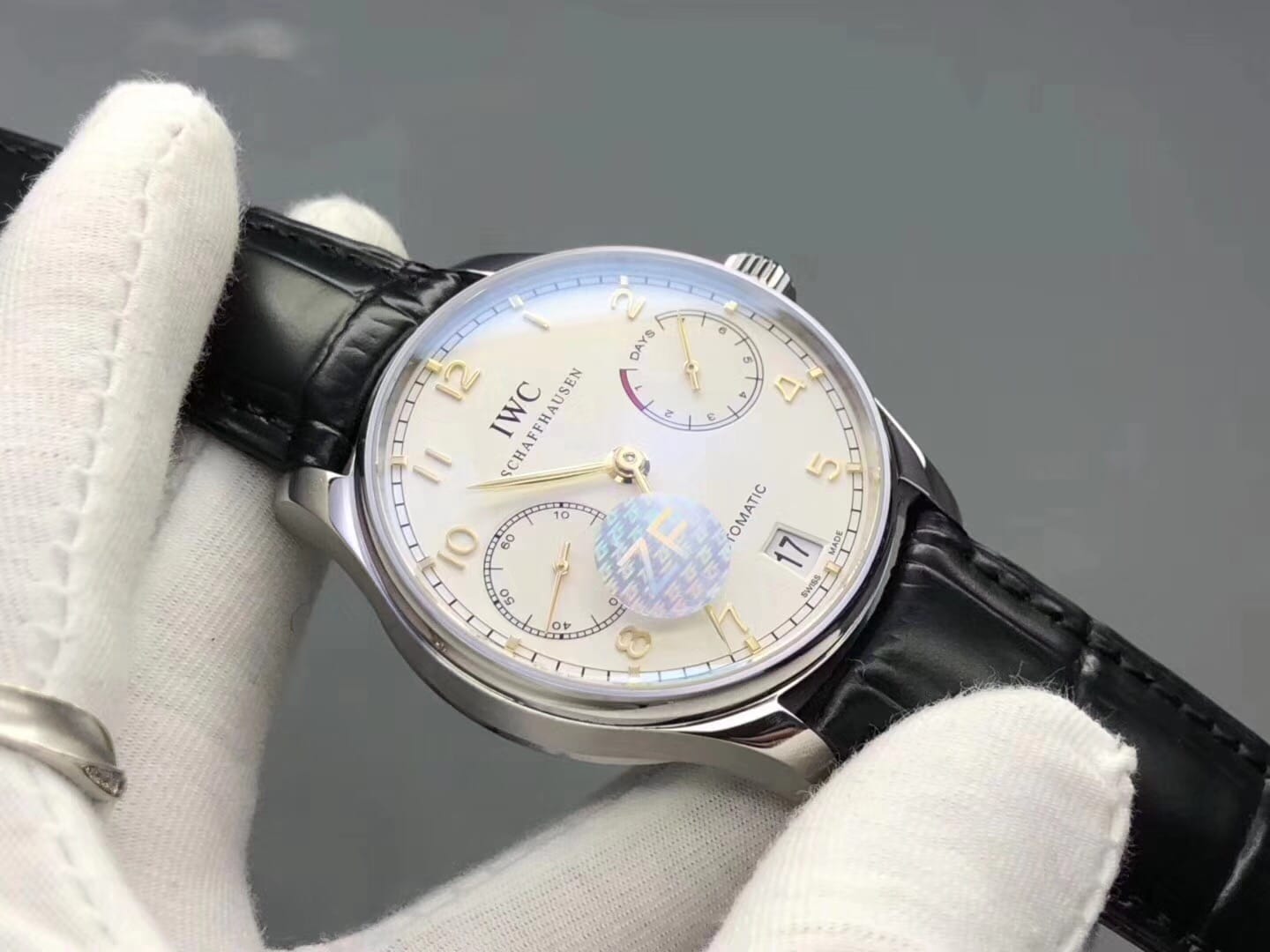 万国IWC葡萄牙:1,时分秒针高度与正品一致,紧贴表盘,2,