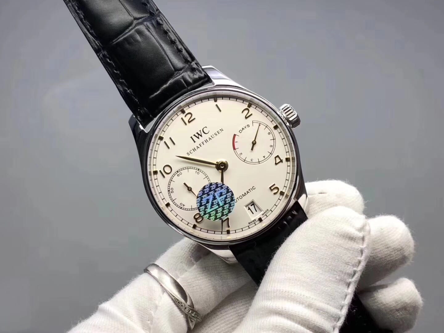 ZF 万国品牌中流砥柱,颜值担当万国葡七V4最高版本 真正正品开模且功能与正品一致,左侧小秒针,右侧真动力指示针。复刻正品52010新型自动机械机芯,经数次升级已媲美正品(机芯摆轮处与自动锤中轴均已洗花,宝石颜色泽也加强同正品一致)玻璃采用蓝宝石镜面镀以蓝膜,通透度了得,底盖亦为蓝宝石大透底,机芯之美一览无遗。指针为烧钢蓝针,与正品材质工艺完全一样。整表316L精钢,表身拉丝倒角均十分到位。搭配万国新型的葡萄牙折叠扣,摘取十分方便。这是一款在任何场合都适合佩戴的高颜值高性能腕表,且现今也已达到前所未有的复刻高度,值得你认真去爱。
