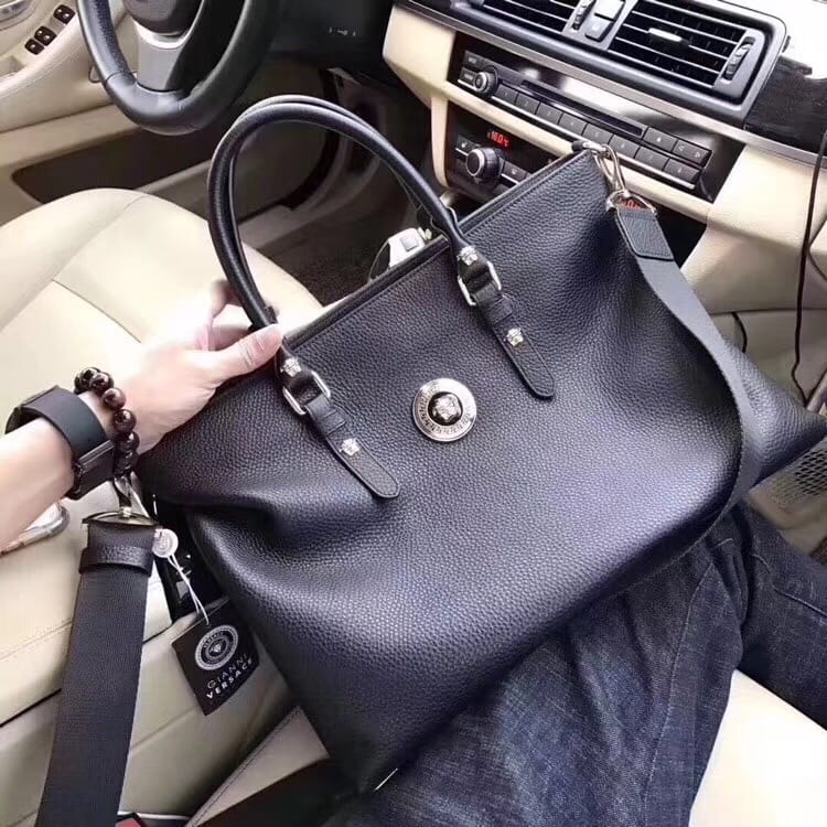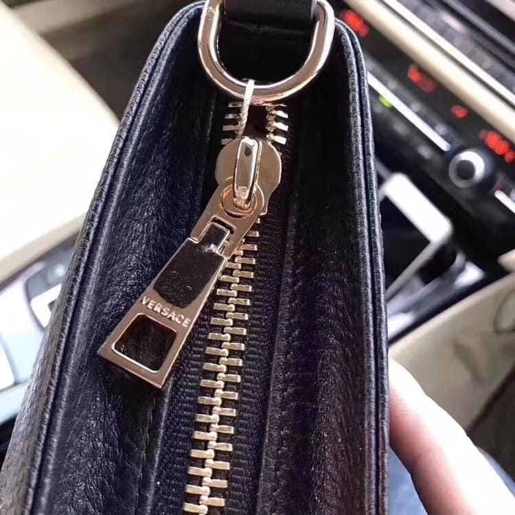 型号:7135-1-1GIANNI VERSACE 顶级原单货2018最新款式正品开模专柜同步。范思哲男士霸气手提包?毛孔清晰可见? (实物拍照、无添加任何效果)顶级进口原版头层牛、?不是头层牛皮不要钱?超高技术包边设计压线制作、专柜里料、超顺滑拉链、独特休闲高档风格。规格39x29x6.5cm