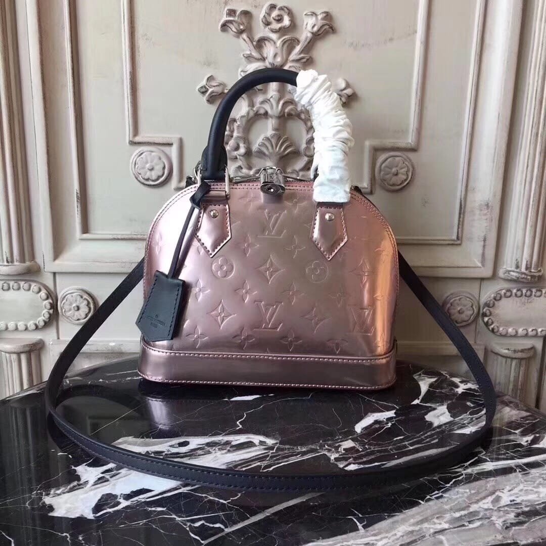 90485 新款BB 系列 、新款贝壳包 配备两条肩带哦[呲牙]尺寸25*19*12 (长*高*宽) 颜色;玫瑰金粉、玫瑰金粉配黑色、琥珀银、琥珀银配黑色、琥珀银配黄色、 以上五个颜色都有现货 、实物颜色更漂亮哦、Monogrm压纹漆面小牛皮,内衬超细纤维,光滑牛皮饰边,双拉链开合,包底配有4枚保护底钉 防磨损,内饰智能手机袋,配备挂锁和钥匙罩、搭配双肩带(一细、一粗) 让你个性十足的一款包