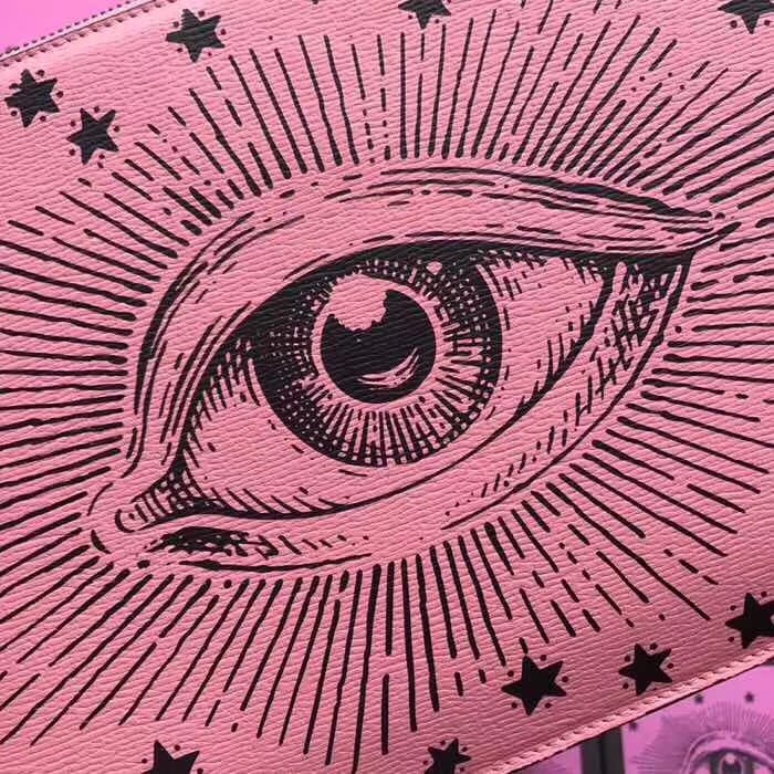 欧洲正品原单??美到淋漓尽致无可挑剔???潮流粉眼睛?女性最爱??出门携带方便?采用进口头层牙签纹配进口最潮流粉眼睛图案,美美哒?实物拍摄,原版皮质,做工精湛,型号516928粉眼睛。尺寸:W30×h20