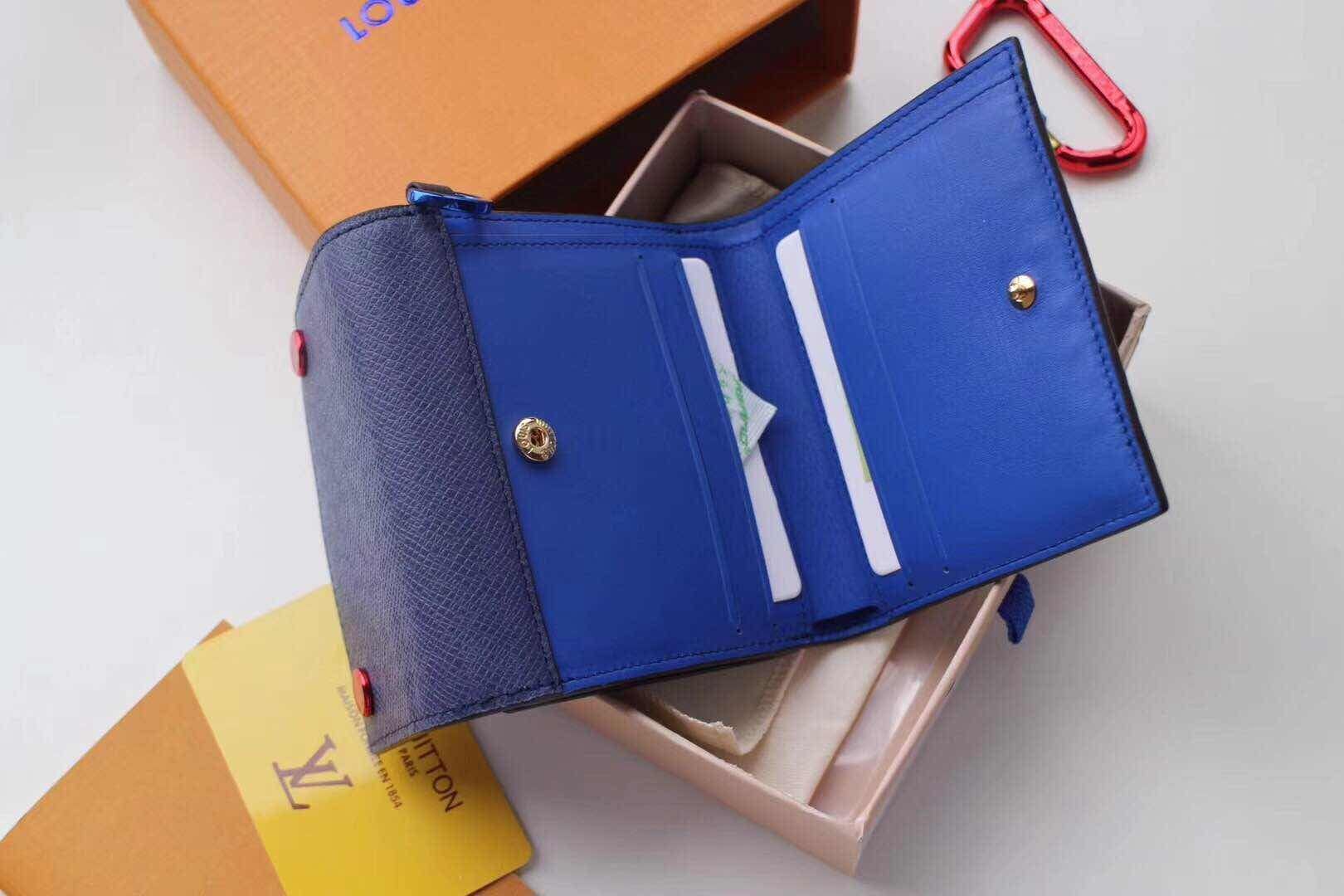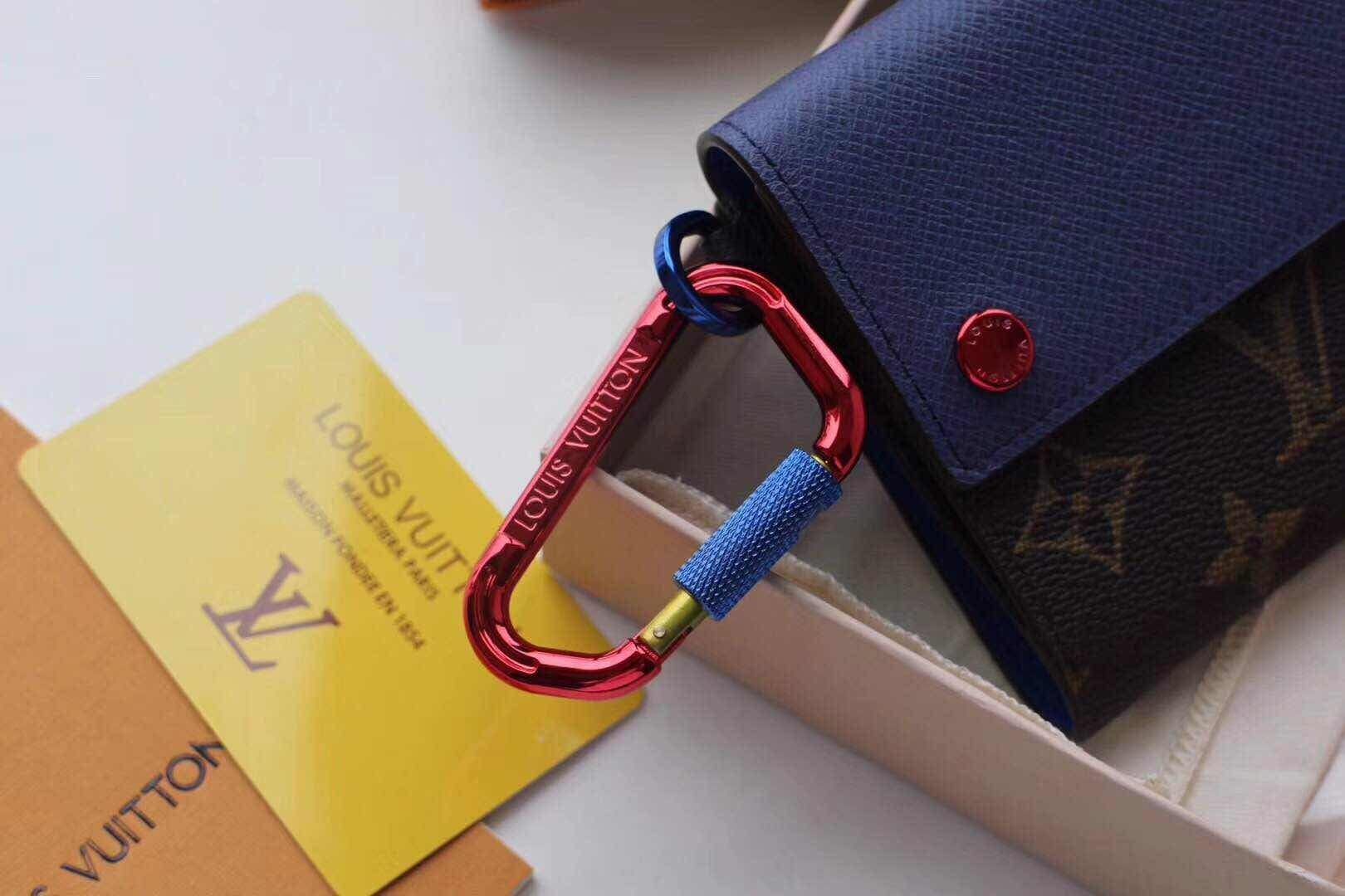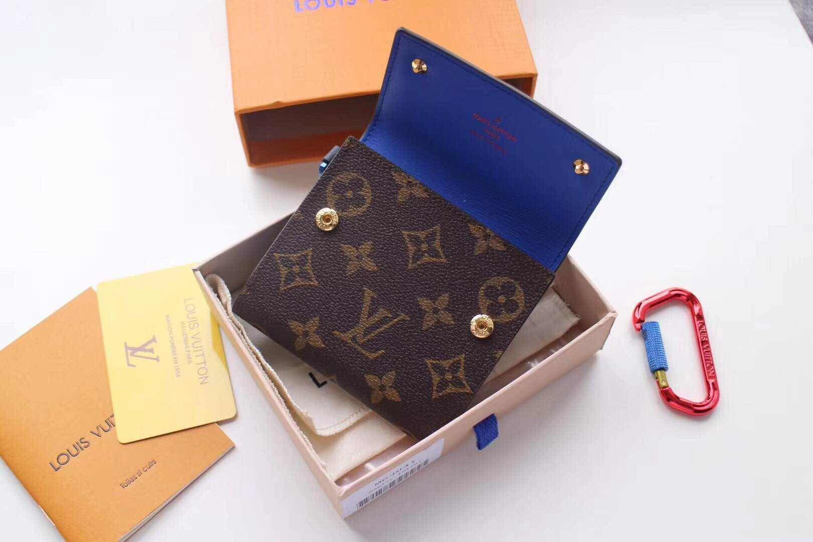 顶级原单短款钱夹M63041? 亮相2018春夏时装秀的新品,出自男装艺术总监Kim Jones之手、极富工艺质感的运动风格设计,此款极为实用的短款钱夹以标志性Monogram帆布搭配登山者安全扣环式的彩色金属饰件。9.5x 10.5 cm (长x 高)