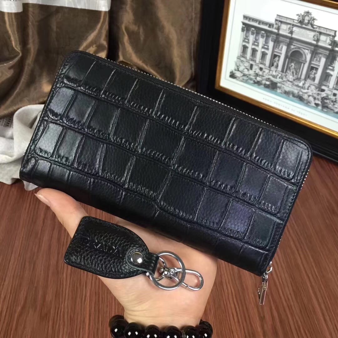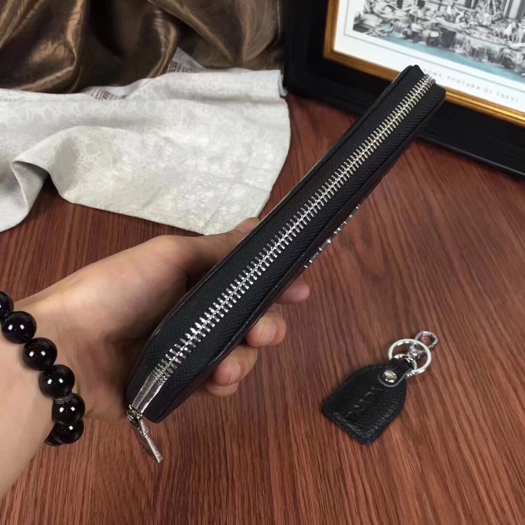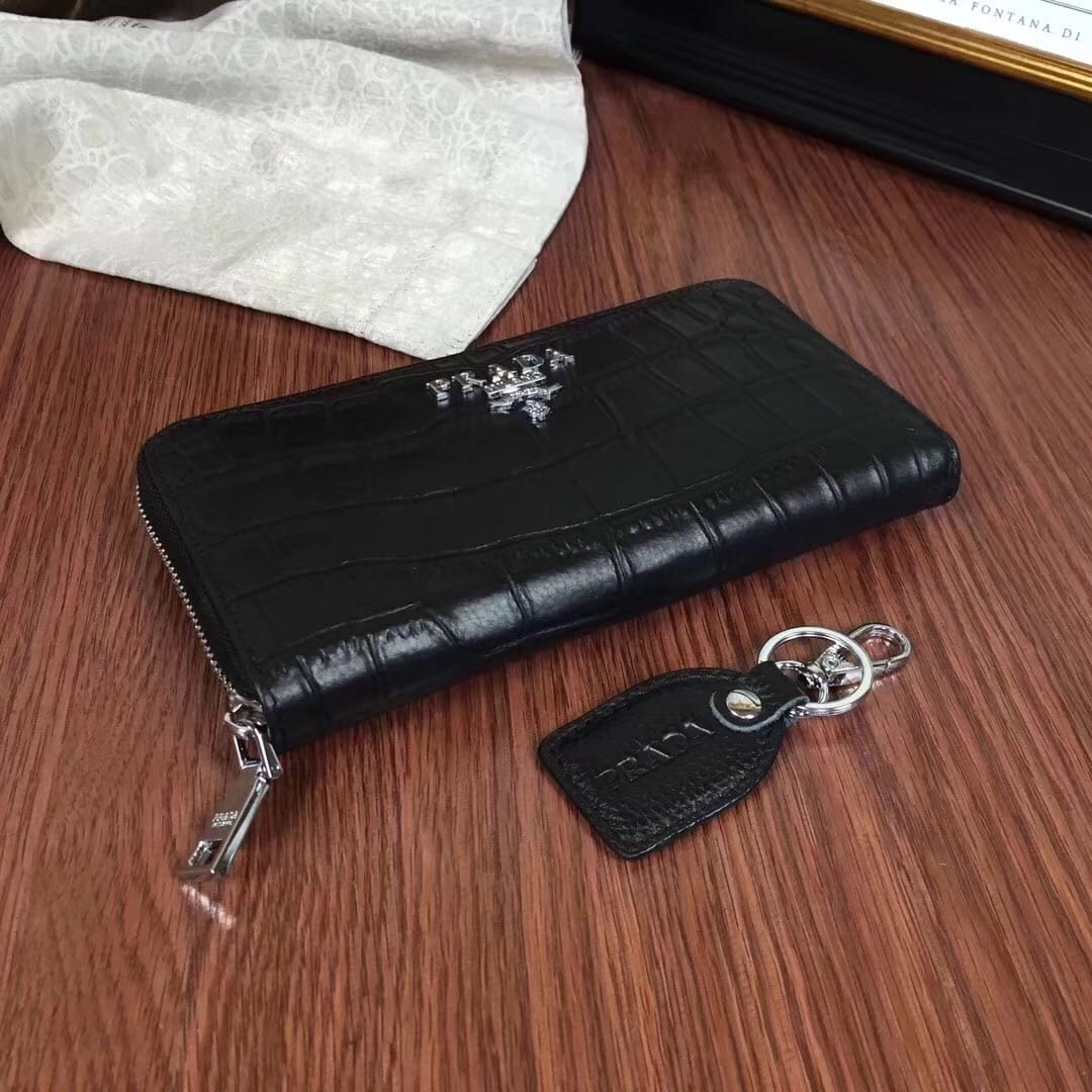 PRADA『普拉达』独家新款??注明:搭配礼品盒,礼品袋,发票齐全 【型号】81928# 高端拉链手包小号 【尺寸】19.5-10.5-2cm 【颜色】黑色 高端品质(原单正品) 【材质】PRADA专柜代购经典款??采用原厂进口?皮鳄鱼纹??正宗进口YKK标志五金及拉链及拉链头??皮质柔软手感??独特的品质??简单大方时尚的设计??复杂的手工构制?潮男必备?