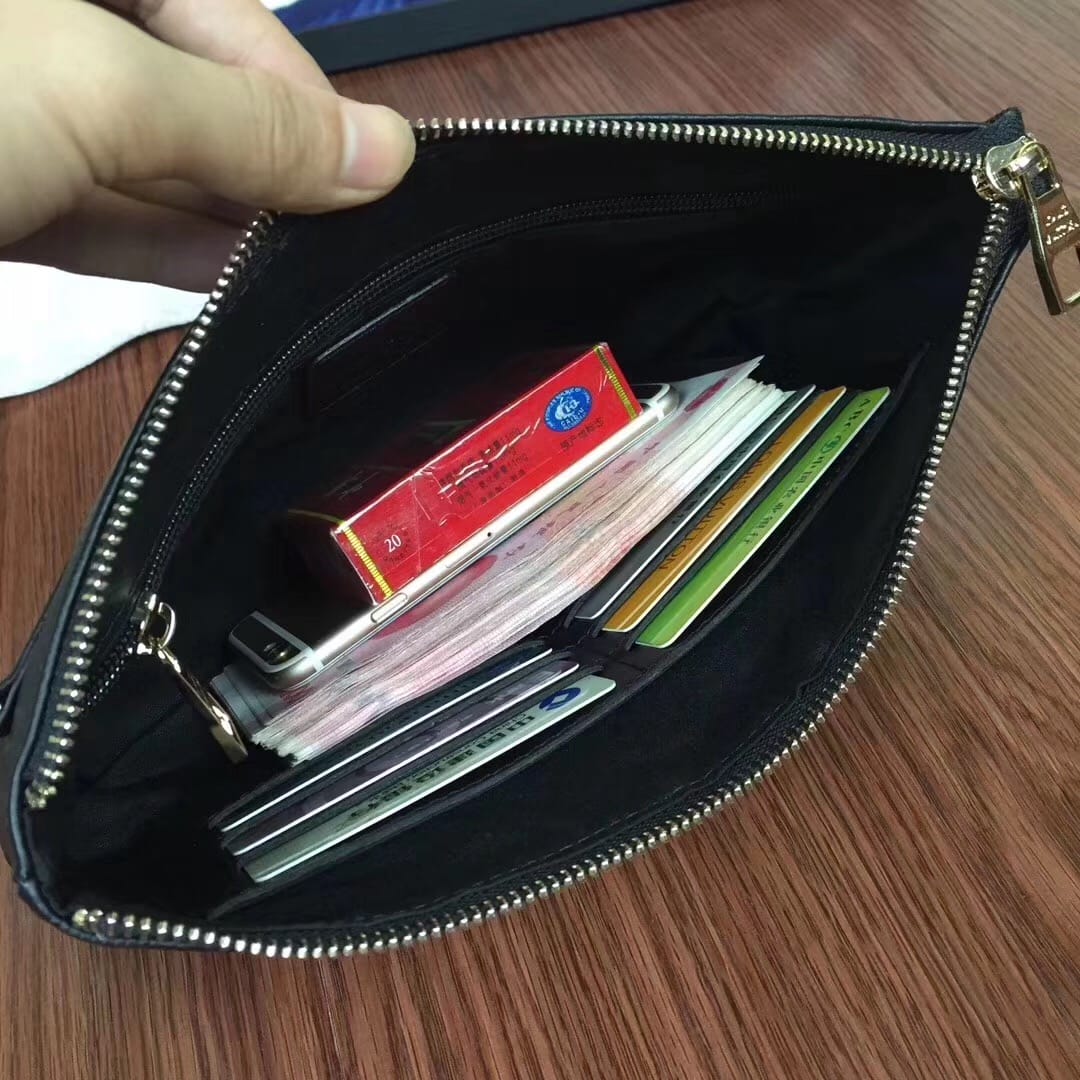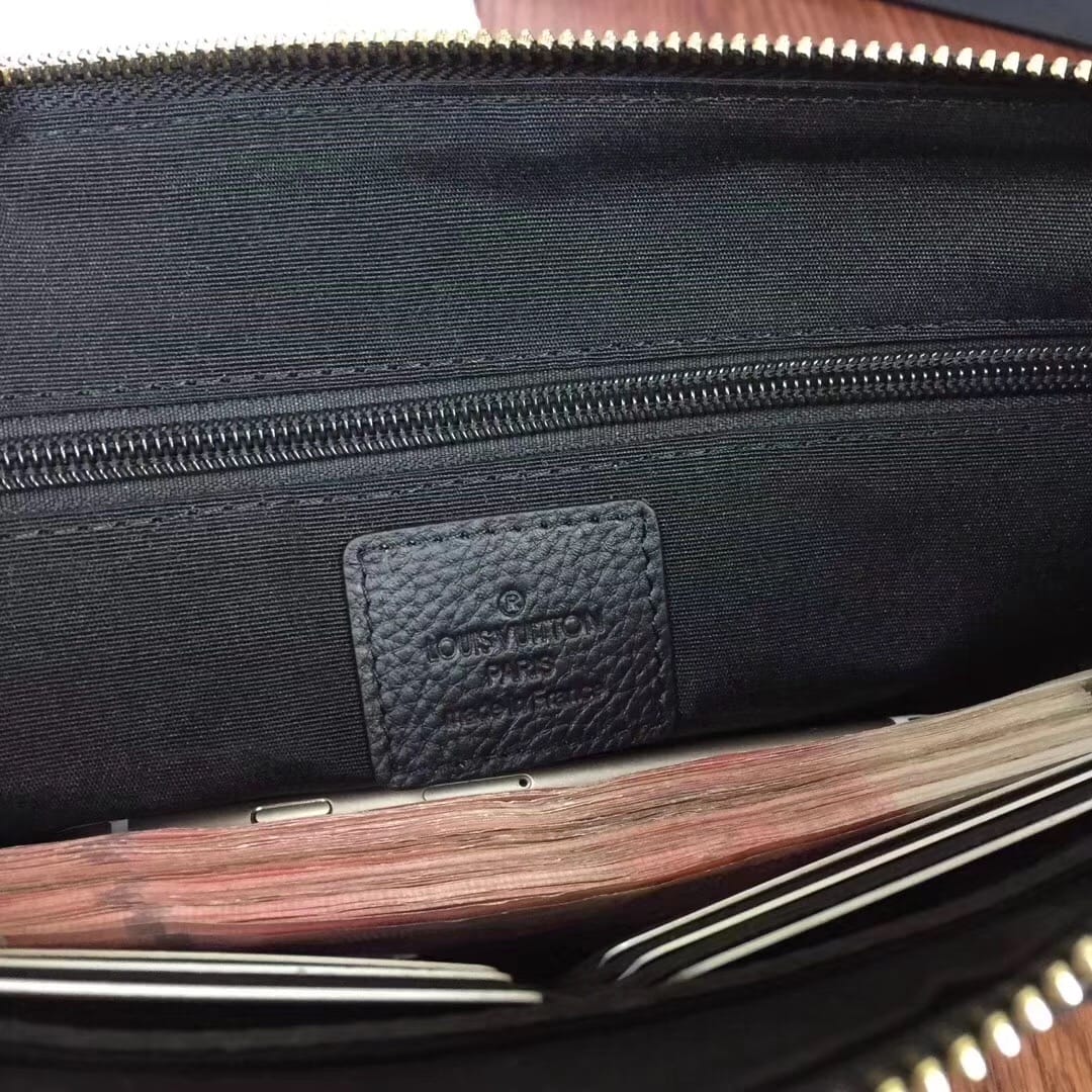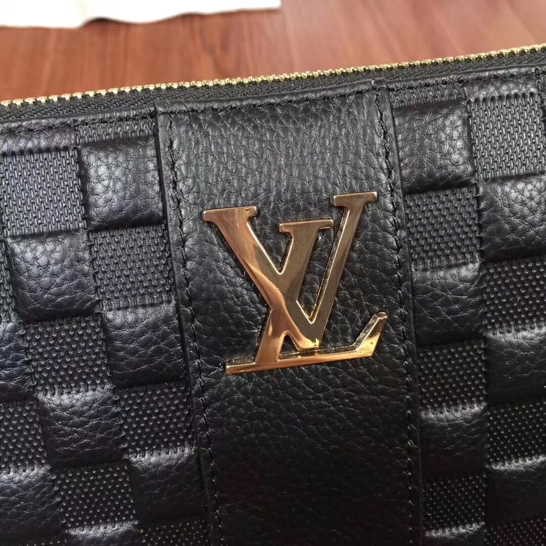 【配礼品盒、发票】LV 最新款手包??顶级进口?皮荔枝纹压纹搭配原版里布?高端金色五金??内置6??卡位,独一无二的它,每一针每一线都非常精细彻底,每一寸每一尺都一丝不差,不怕货比货 就怕不识货!市场原版最好的货??专注高端,只为更高品质的它。独家实拍?款号:81623#,颜色:黑色,尺寸:27*17*3cm!