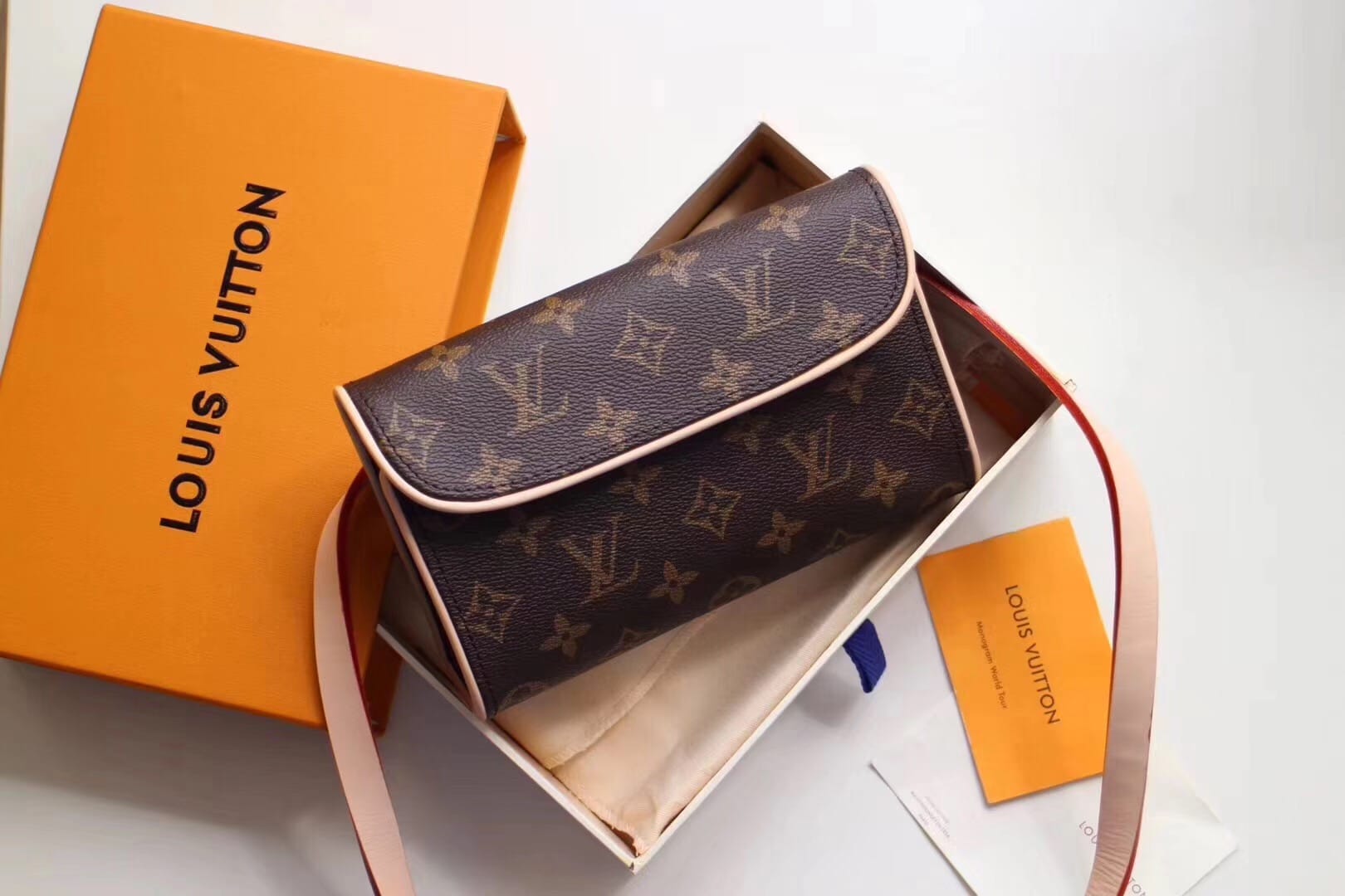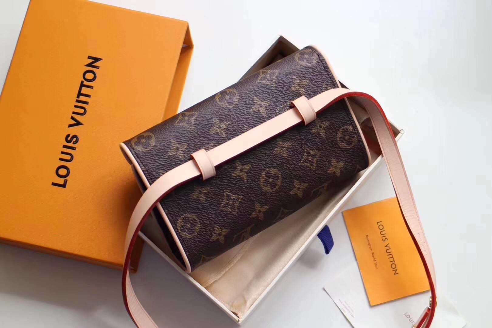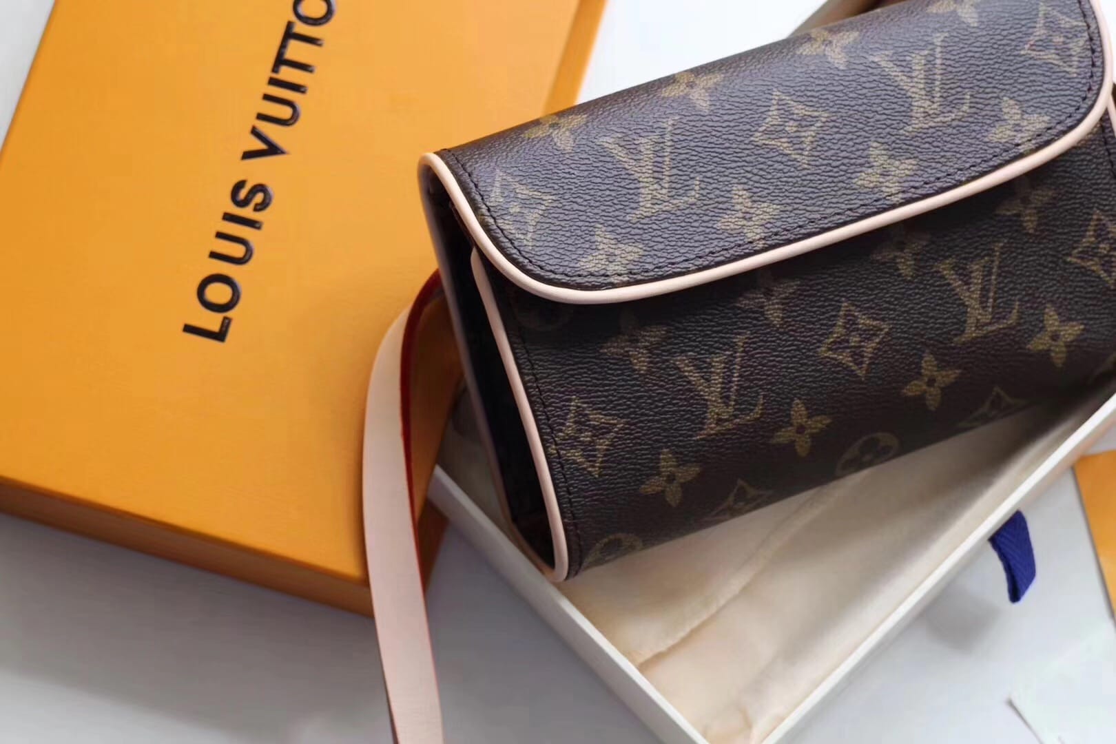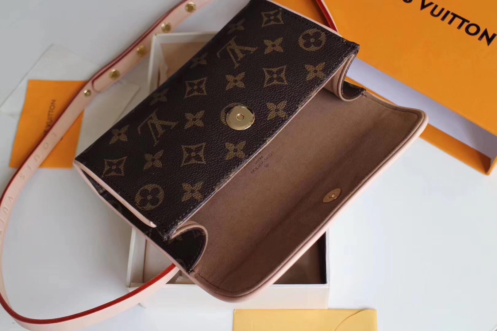 老花腰包 M51855 经典柔软Monogram面料搭配变色黄皮饰边 也可以当胸包 斜挎包使用 可调节肩带 随意搭配 怎么搭怎么美 (腰带长度约75-90cm)size17*4.5*10.5