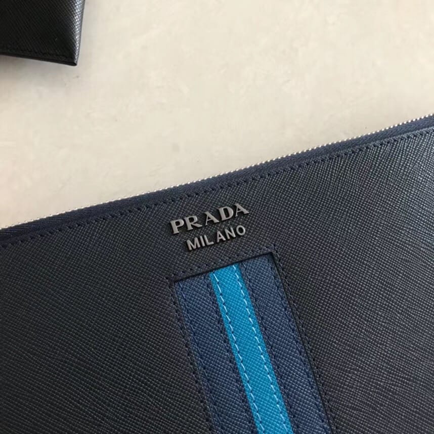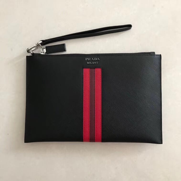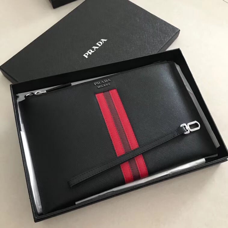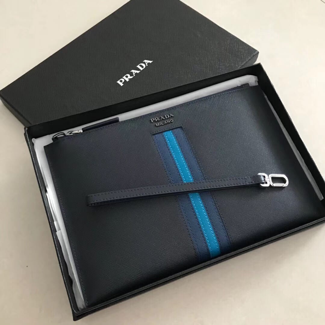 P家??男士十字纹手包,原单品质,型号2NG005,一个拉链夹层,一个内袋,六个卡位插袋,尺寸28×18cm,配专柜包装,代购热卖款?