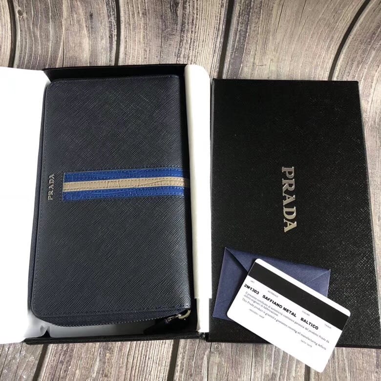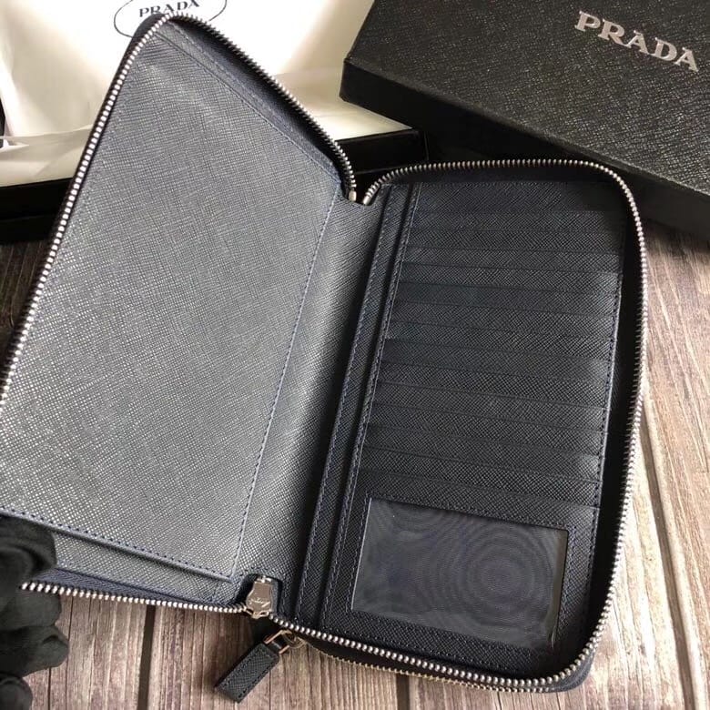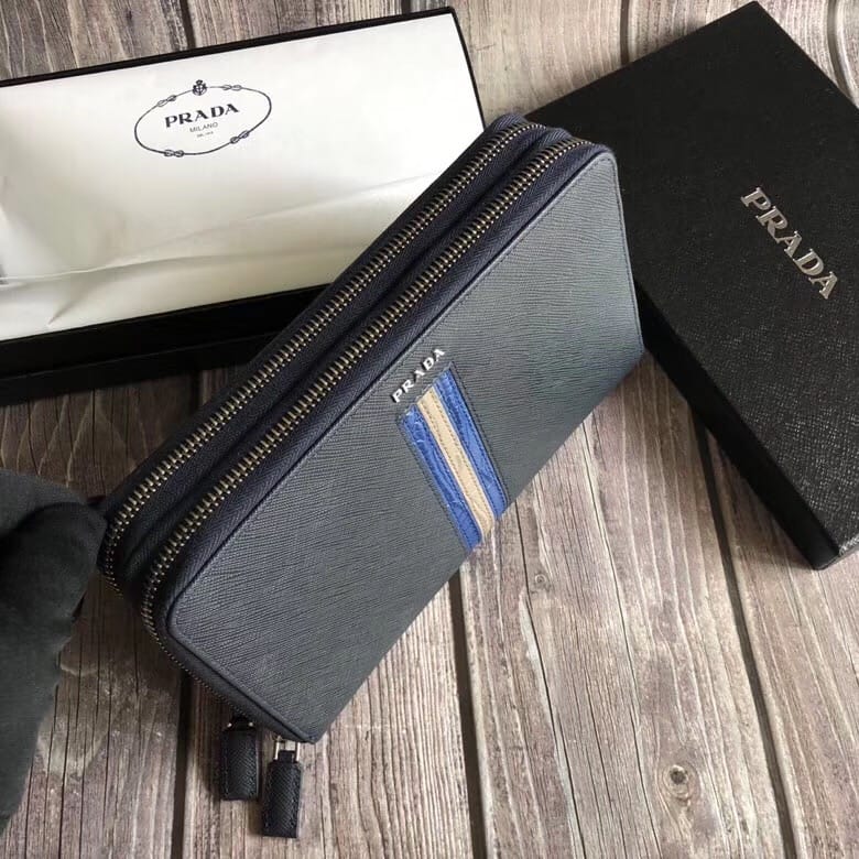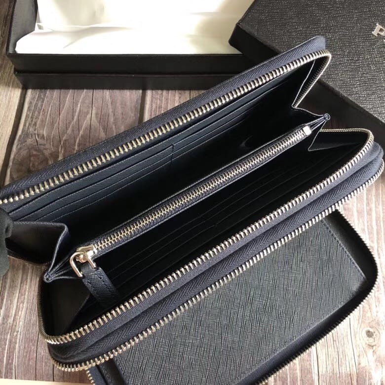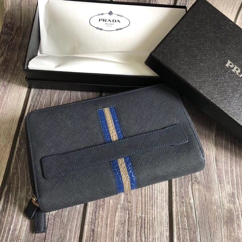 P家??十字纹双拉款男士手包,深蓝色,原单品质,两个拉链隔层