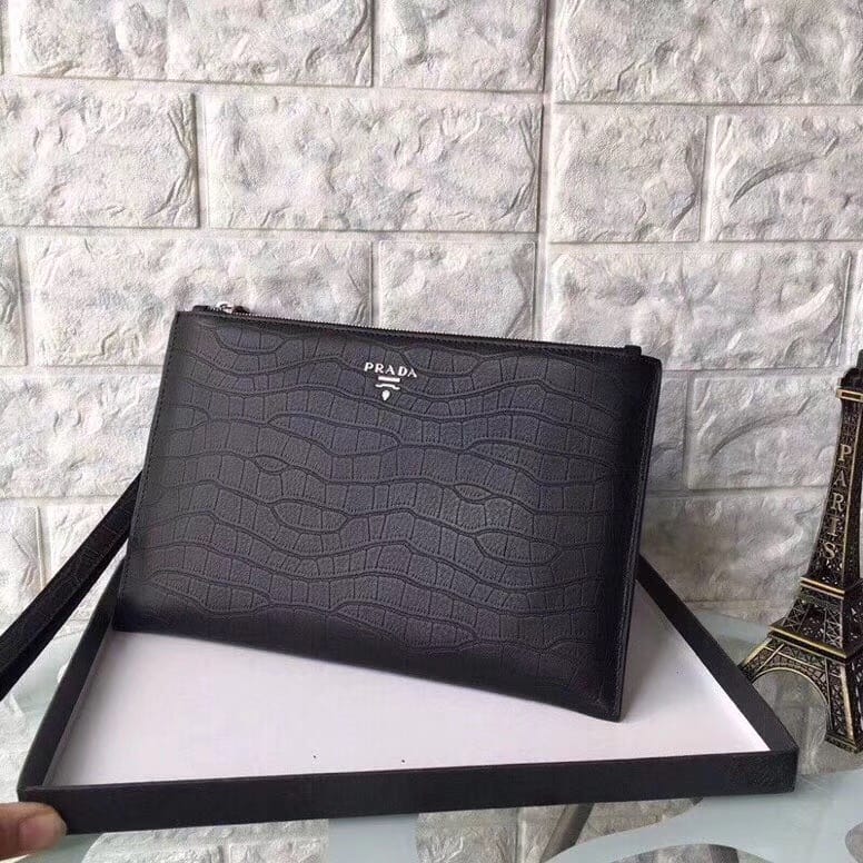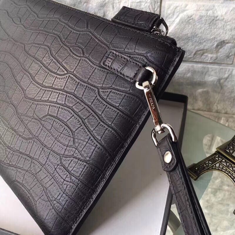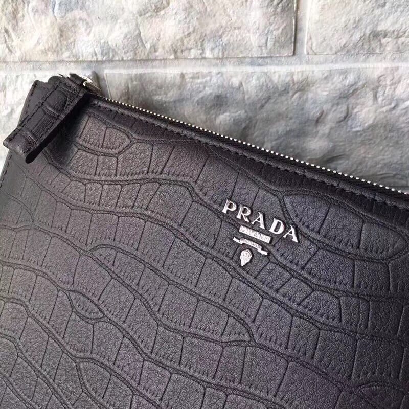 PRADA??高端品质??进口原单牛皮压鳄鱼纹??质量手感