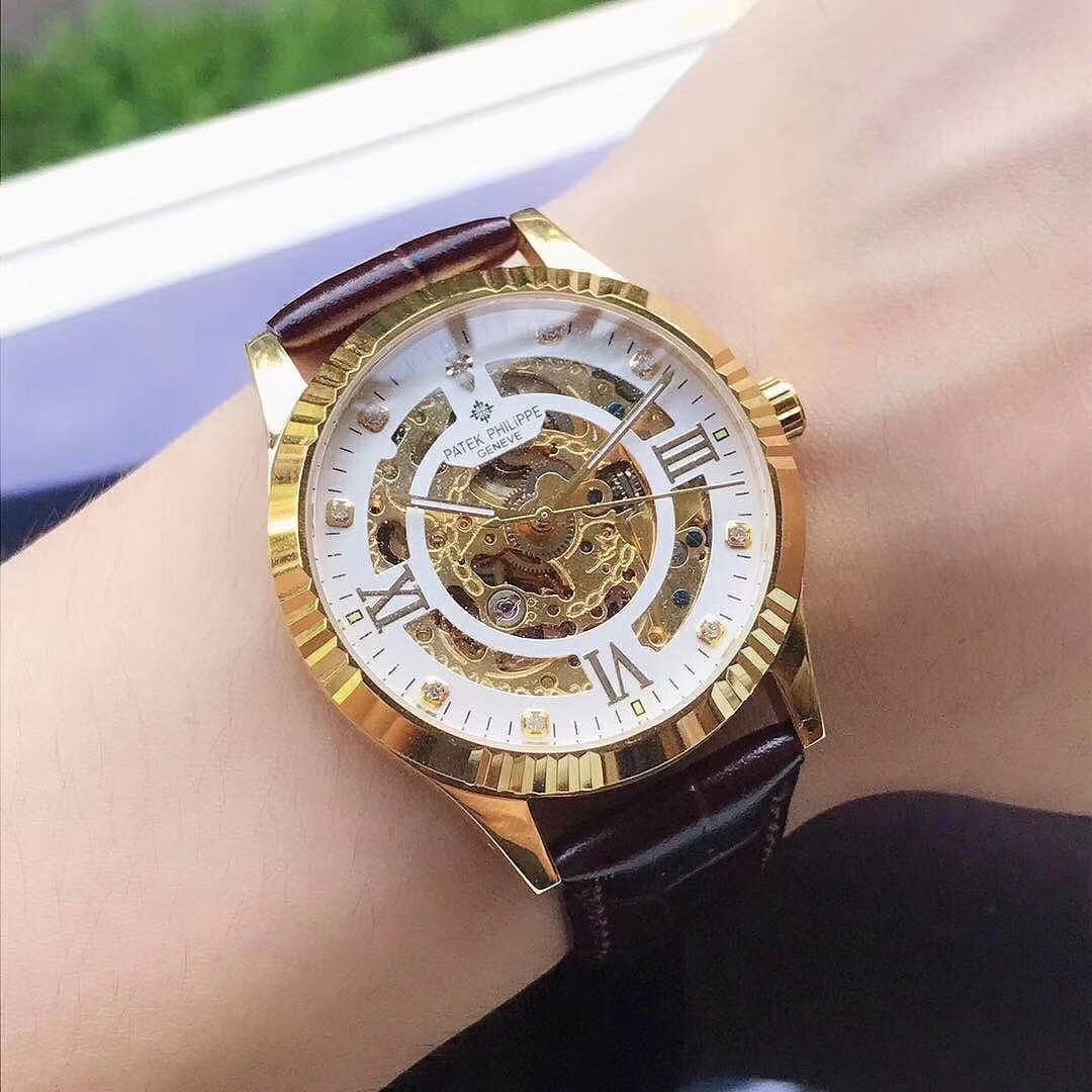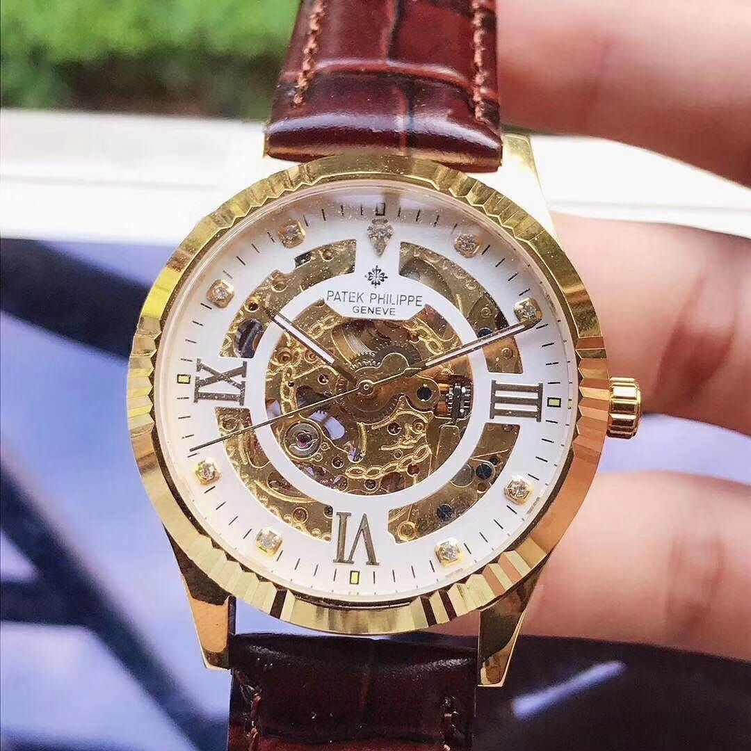 百达翡丽-PATEK PHILIPPE 简约三针搭配镂空设计 男士手表