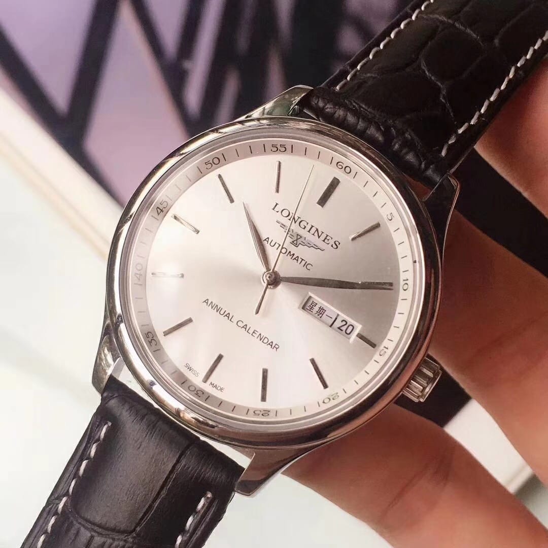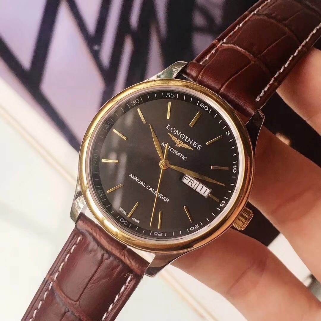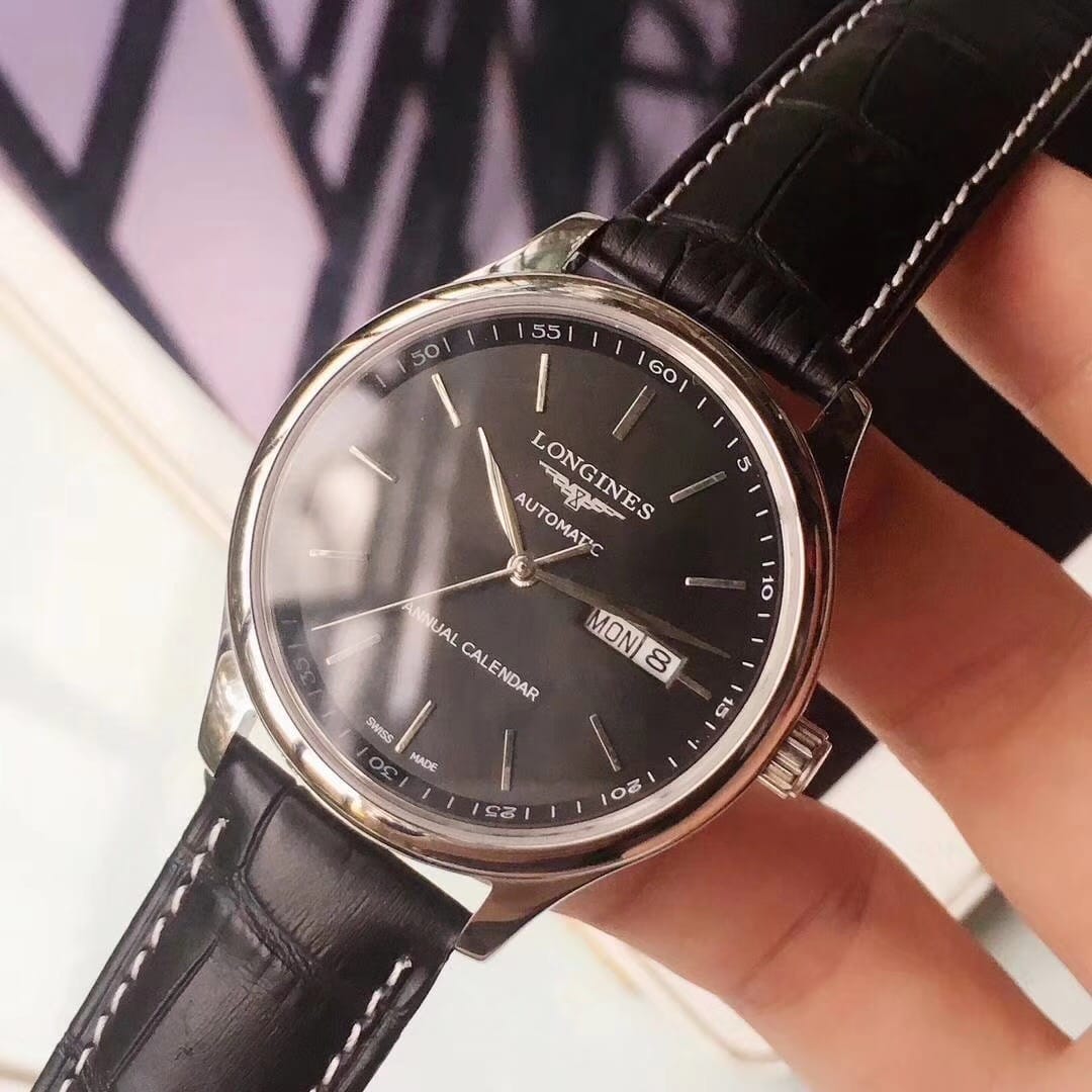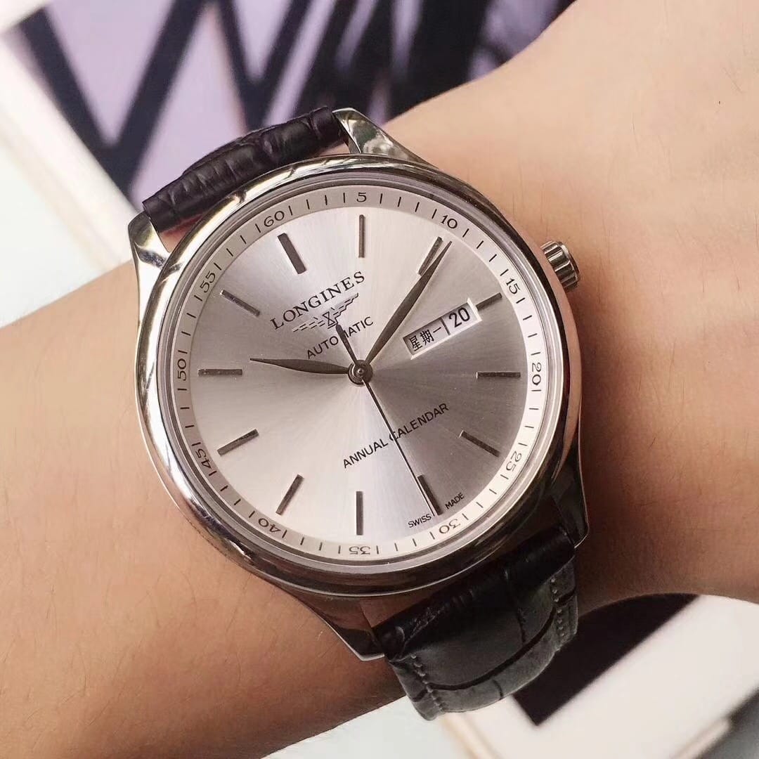 浪琴-LONGINES精品男士腕表 顶级进口牛皮表带 原装表扣