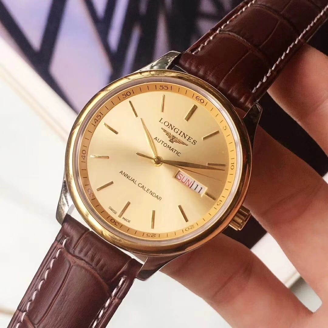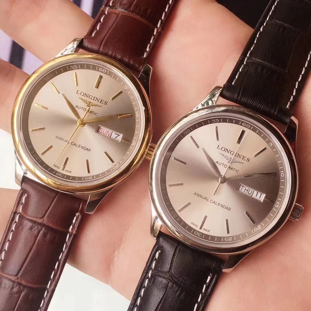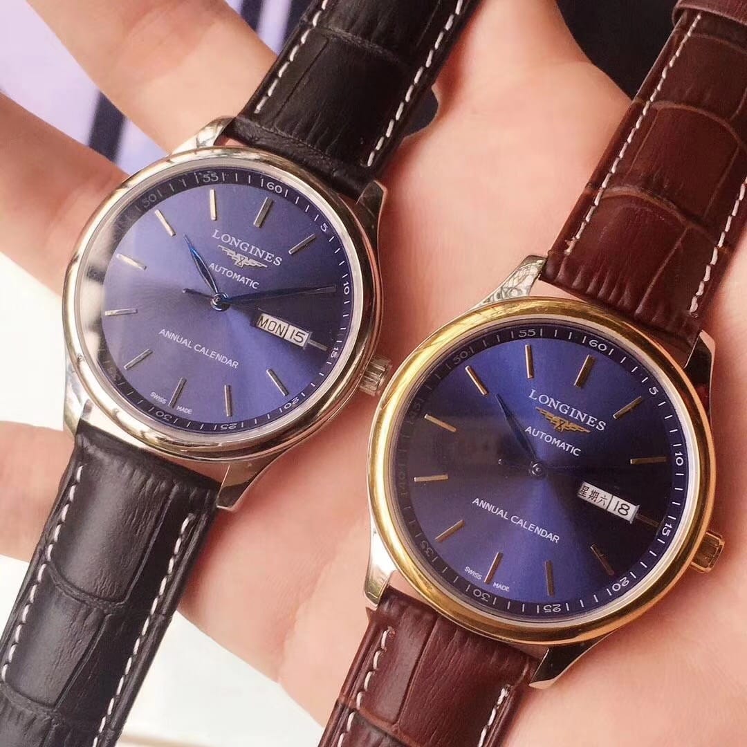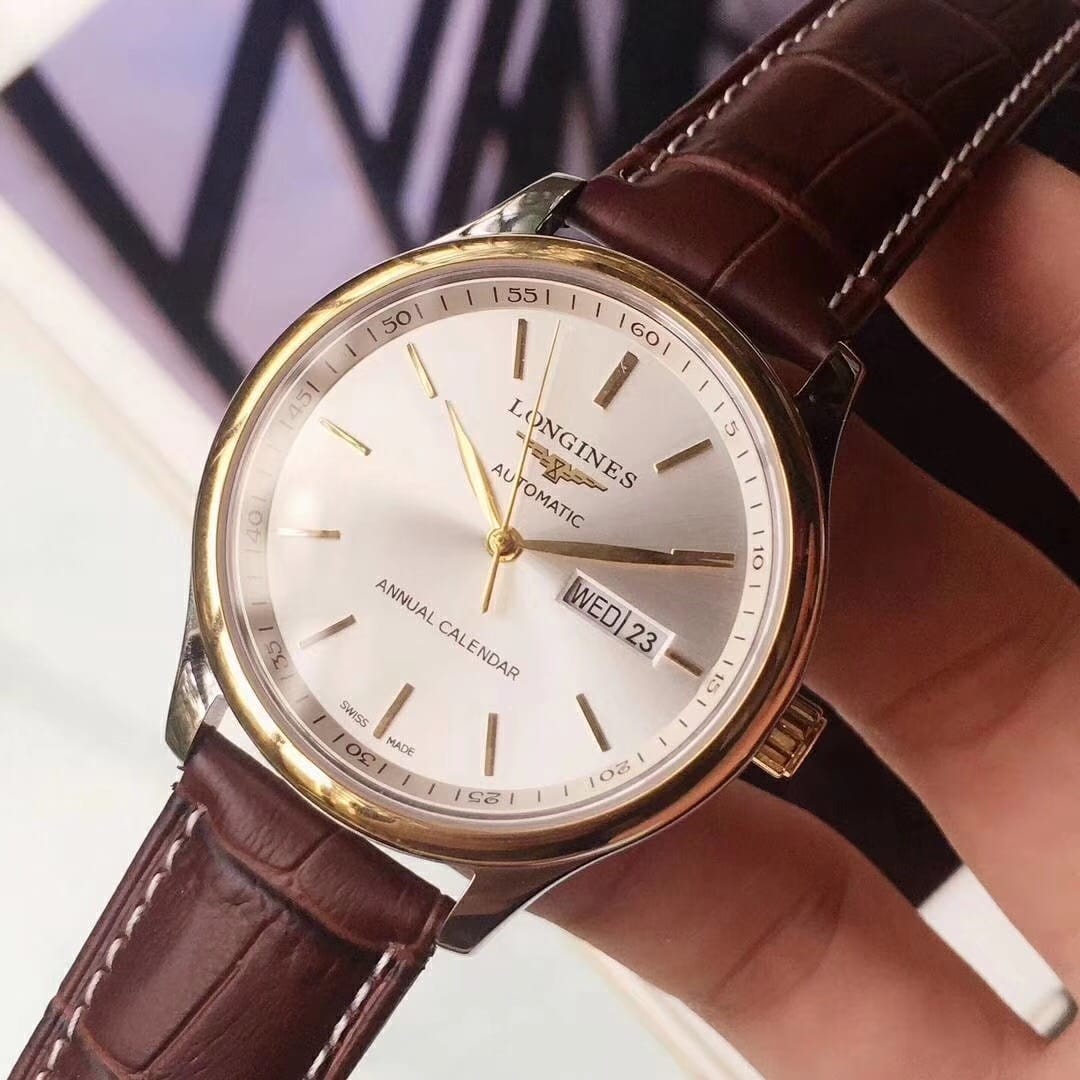 浪琴-LONGINES精品男士腕表 顶级进口牛皮表带 原装表扣