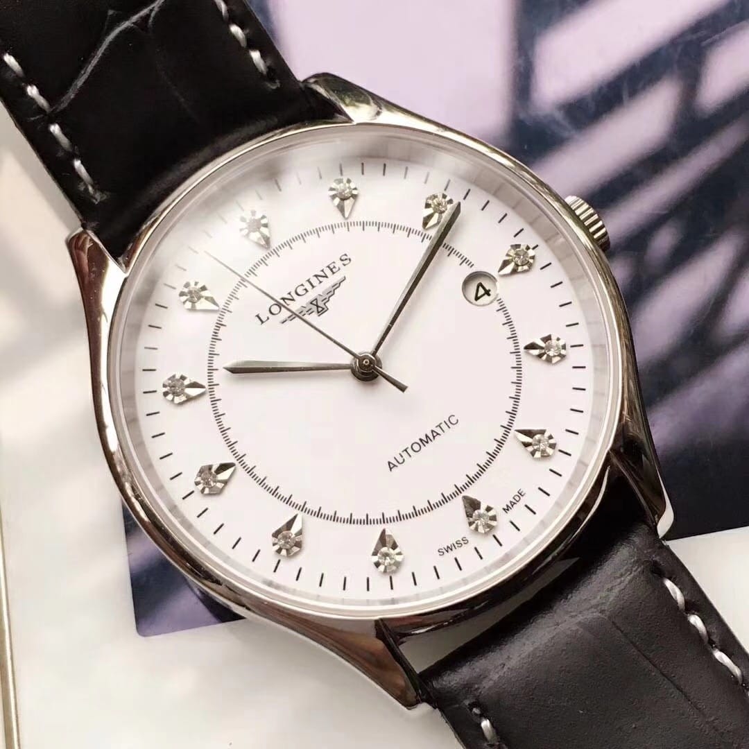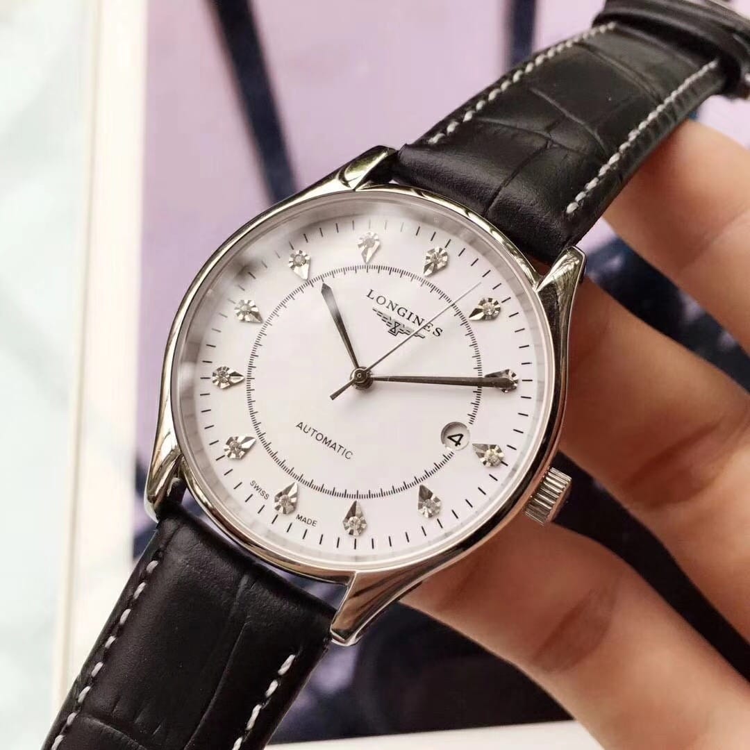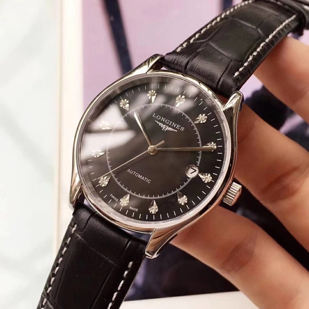 品牌:浪琴-LONGINES精品男士腕表,简约三针搭配3字位单日历设计,316精钢表壳,全自动机械机芯,尺寸:男40mm厚12mm,顶级进口牛皮表带,装配原装表扣A级水晶镜面