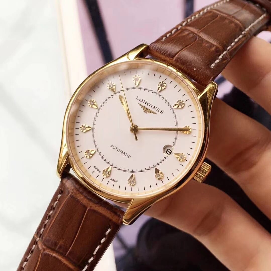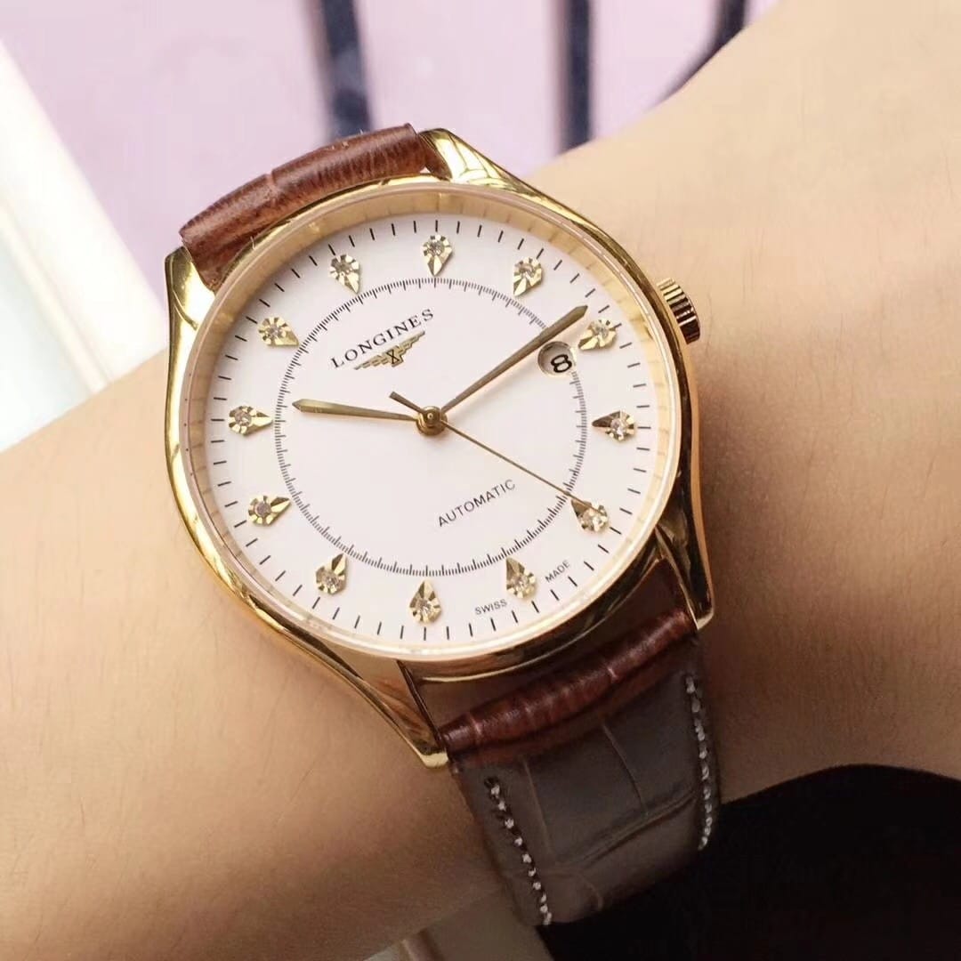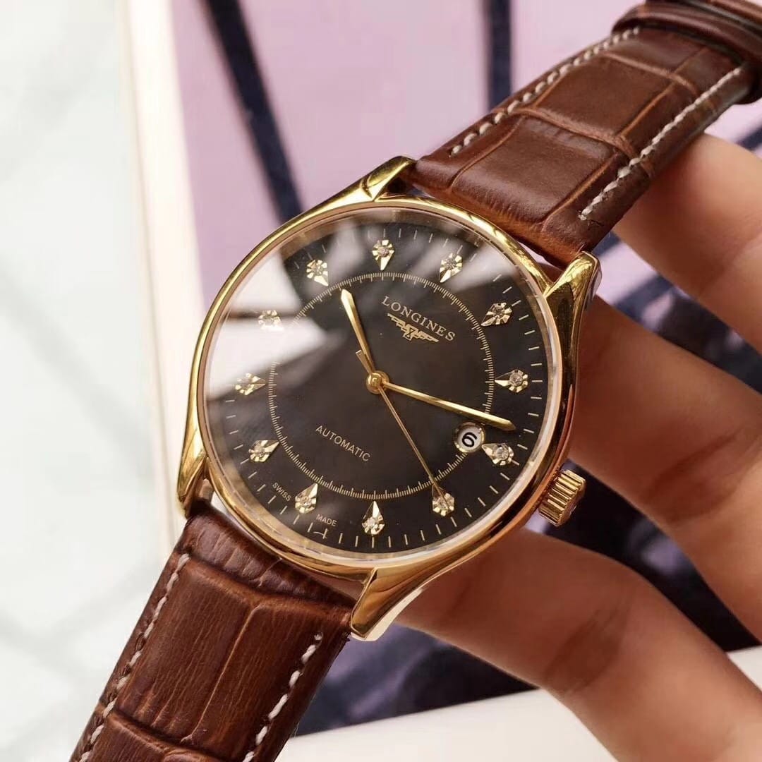 品牌:浪琴-LONGINES精品男士腕表,简约三针搭配3字位单日历设计,316精钢表壳,全自动机械机芯,尺寸:男40mm厚12mm,顶级进口牛皮表带,装配原装表扣A级水晶镜面