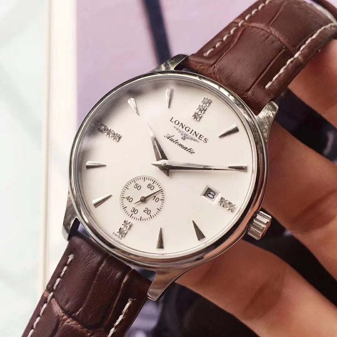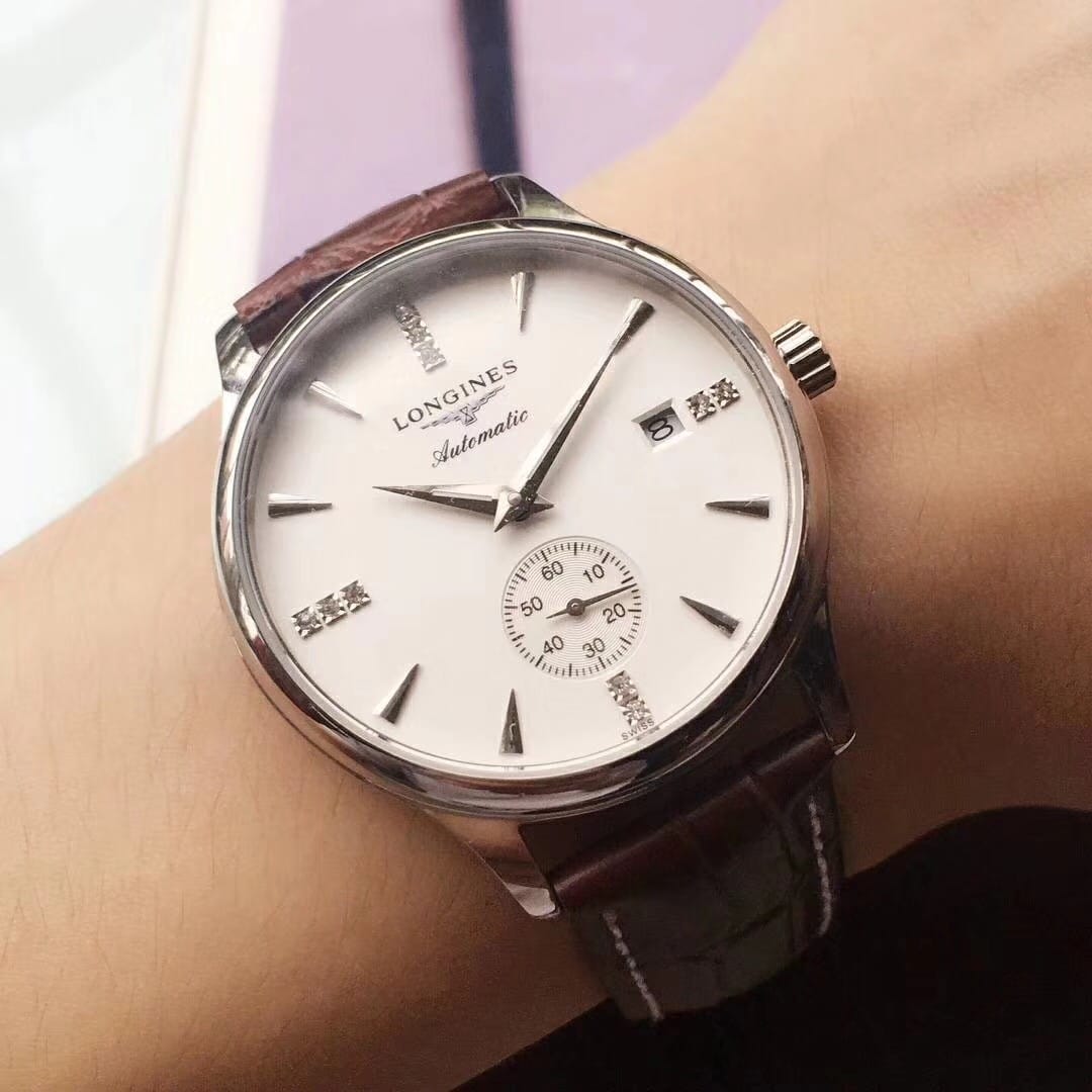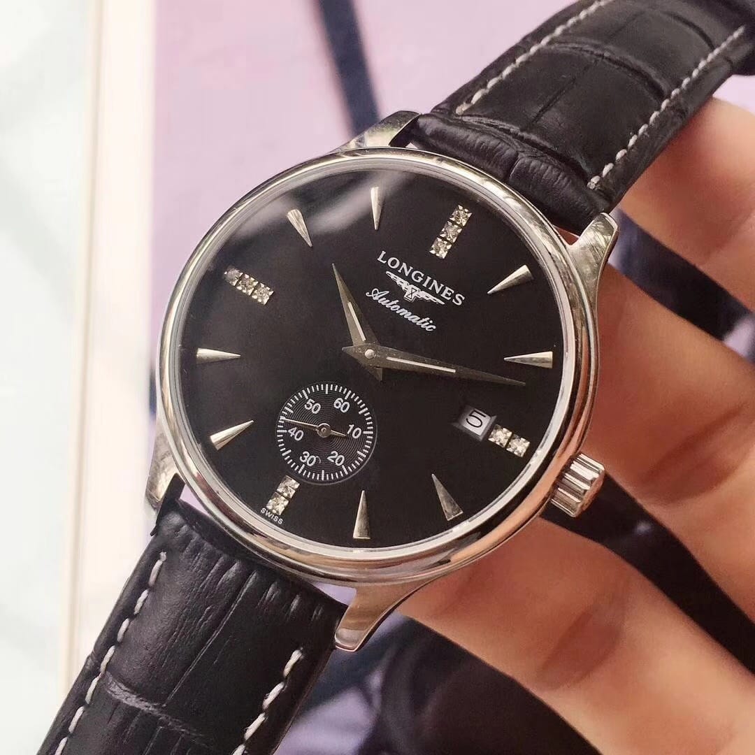 浪琴-LONGINES精品男士腕表 顶级进口牛皮表带 原装表扣