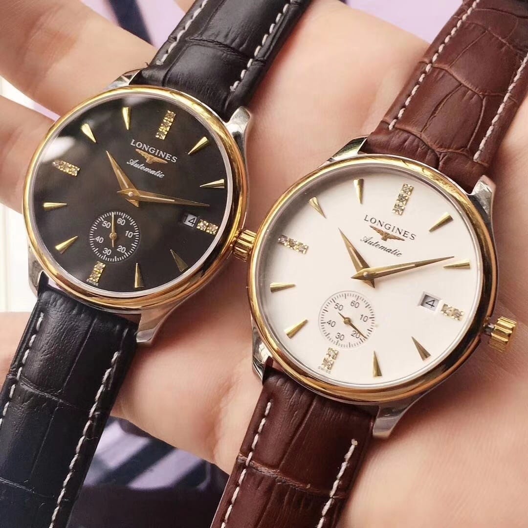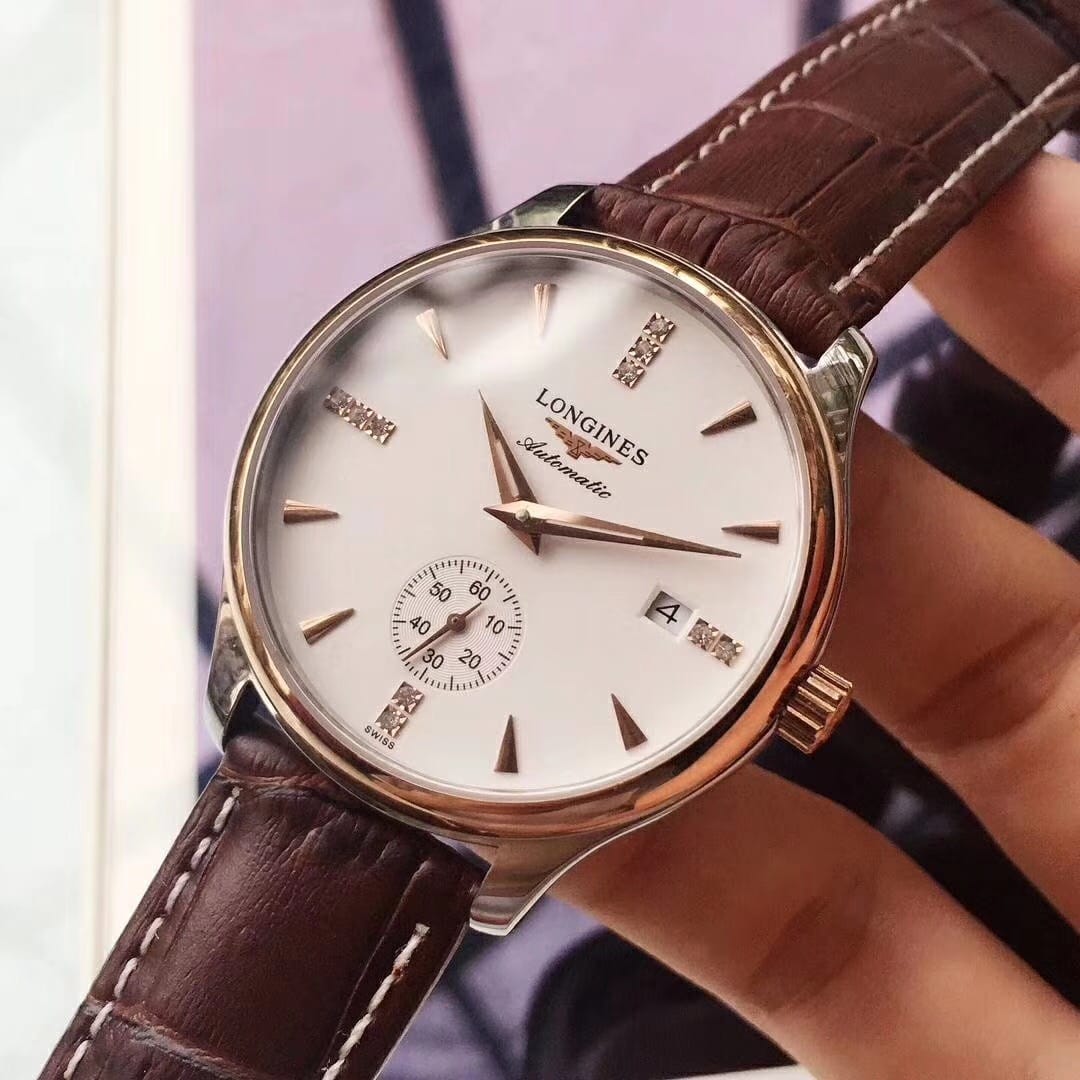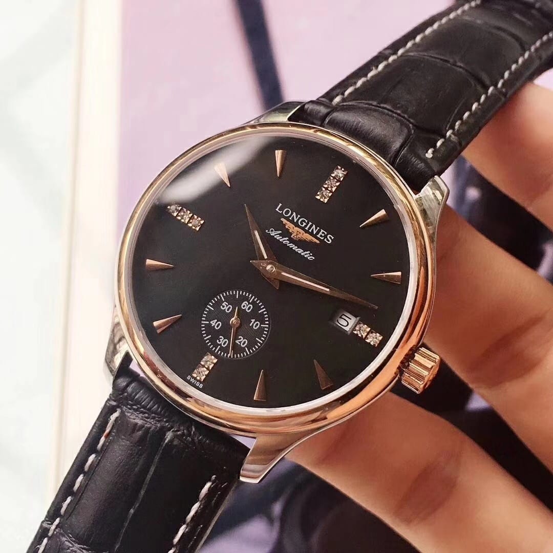 浪琴-LONGINES精品男士腕表 顶级进口牛皮表带 原装表扣